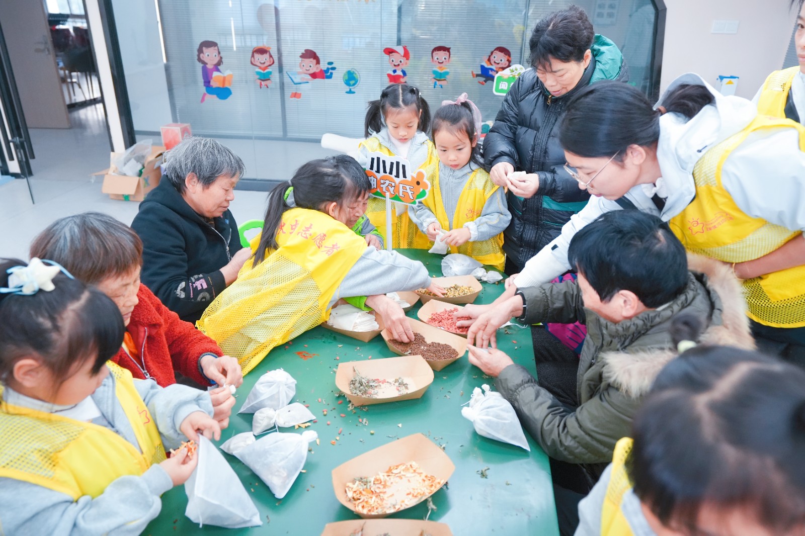 岐黄薪火暖冬日,老幼同乐药草香。12月26日上午,盛家社区儿童之家内药香袅袅、童声朗朗,一场以“一老一小”温情互动为主线、沉浸体验为特色的中医药文化传承活动在此展开。祖孙两代人在识药、制包、品羹的亲密协作中,共同触摸跨越千年的草木智慧,让文化传承在指尖与心间流淌。
