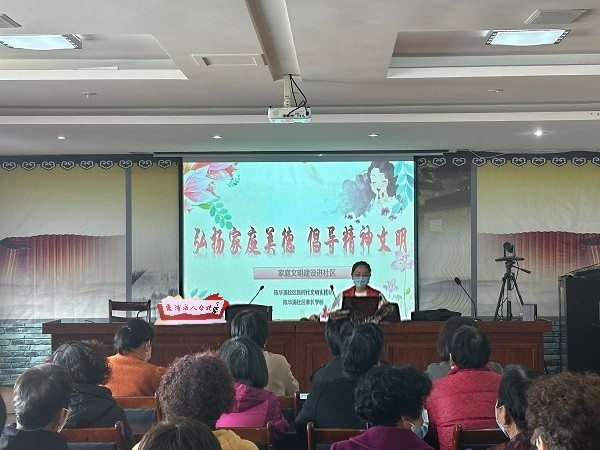 讲座中,志愿者先用通俗易懂的语言向居民讲解什么是家训、家风,如何在家庭中传承良好家风以及女性在家庭中的重要作用,让参加讲座的辖区居民们懂得家风家训这一传家宝的内涵和意义。随后结合以往辖区内评选出来的“最美家庭”事迹,展示了良好优质的家庭文化。接着,志愿者又通过类型多样、具有针对性的正向案例和反向案例,与在场人员亲切互动,共同分析其中蕴含的家庭教育理念,帮助大家树立正确的家庭亲子观,掌握家庭教育的制胜法宝,收获和谐幸福的美满家庭。最后,大家纷纷畅谈自己的好家风好家训,相互交流经验。