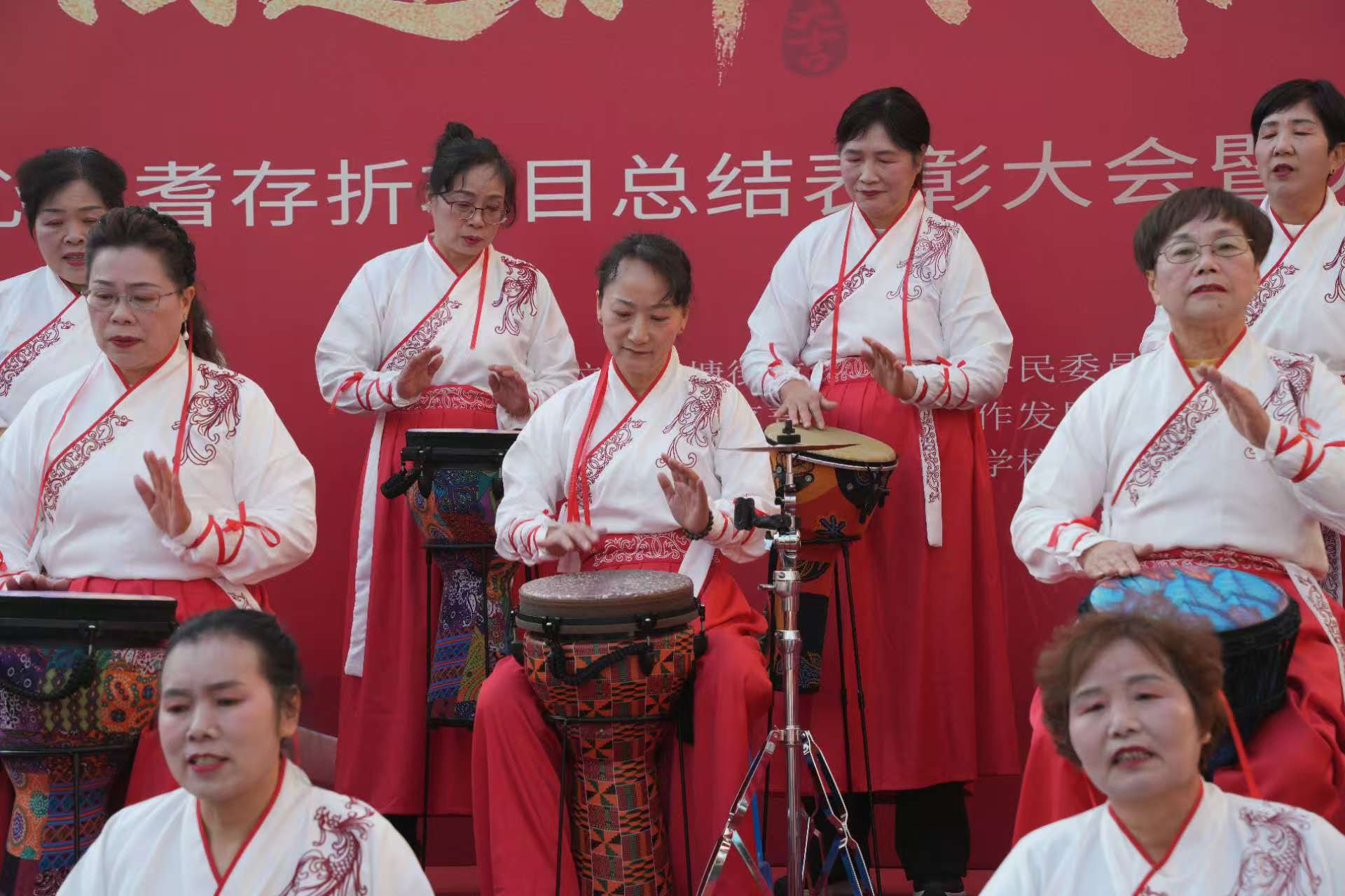 冬日暖阳洒满社区广场,金色的光线温柔地铺展,也照亮了居民们期待的脸庞。一场别开生面的非洲鼓表演即将在此精彩上演——这是庄桥街道老年学校天成社区非洲鼓班的首次公开亮相。学员们早早来到现场,有的反复练习节奏,有的互相整理服装,虽然手心微汗、心跳加快,但眼神中闪烁着坚定与兴奋。这是我们第一次登台,虽有紧张,却满怀热忱,只想用最饱满的状态,为台下的邻里乡亲献上一场活力四射、节奏鲜明的音乐盛宴。