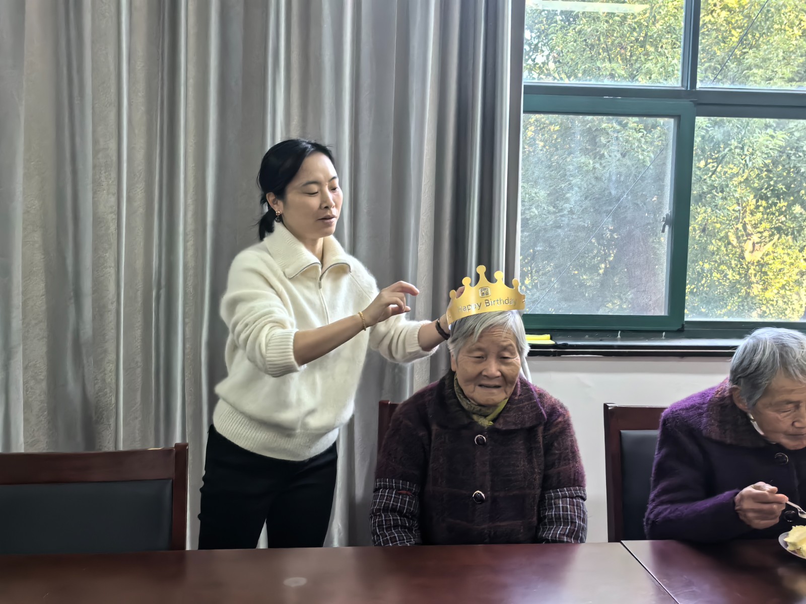 活动现场,志愿者们早早准备好食材,大家分工协作,调馅、包饺,忙得不亦乐乎。随后,老人们纷纷到场欢聚一堂,共庆集体生日。伴着温馨的《生日歌》,巾帼志愿者们为寿星们戴上生日帽、送上香甜的蛋糕。老人们围坐在一起,品尝蛋糕闲话家常,分享着生活中的家风小故事,脸上洋溢着幸福的笑容,现场充满欢声笑语。