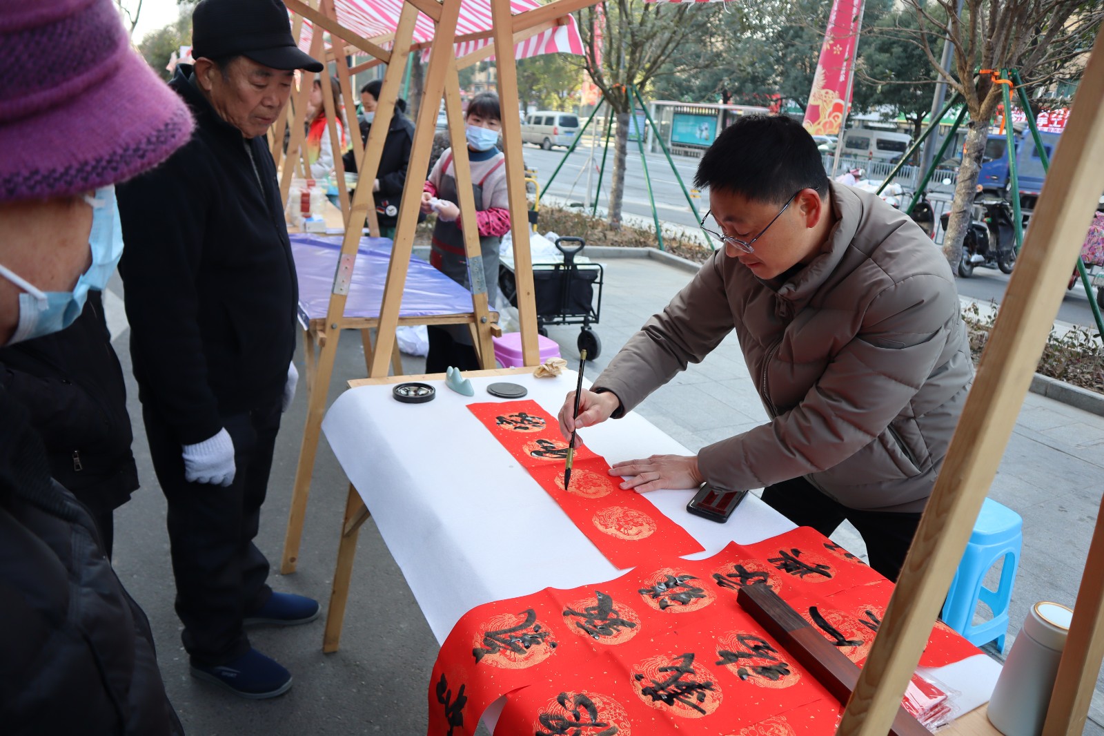活动现场,灯笼高挂,春联飘香,熟悉的吆喝声与邻里间的谈笑声交织成最动人的年末序曲。居民们在这里遇见的,远不止琳琅满目的年货。非遗宋锦制作技艺在传承人的指尖流转出华美纹样,糖画摊前凝聚着孩子们惊喜的目光,手写春联的墨香里承载着对来年最真挚的祈愿。这些鲜活可感的传统技艺,并非遥远的展演,而是可触、可学、可分享的生活场景。长辈带着孙辈驻足体验,一段段关于“老底子”如何过年的故事便在指尖与目光的传递中自然流淌,文化的根脉在代际的默契间悄然延续,凝聚起对本土传统的集体认同与自信。
