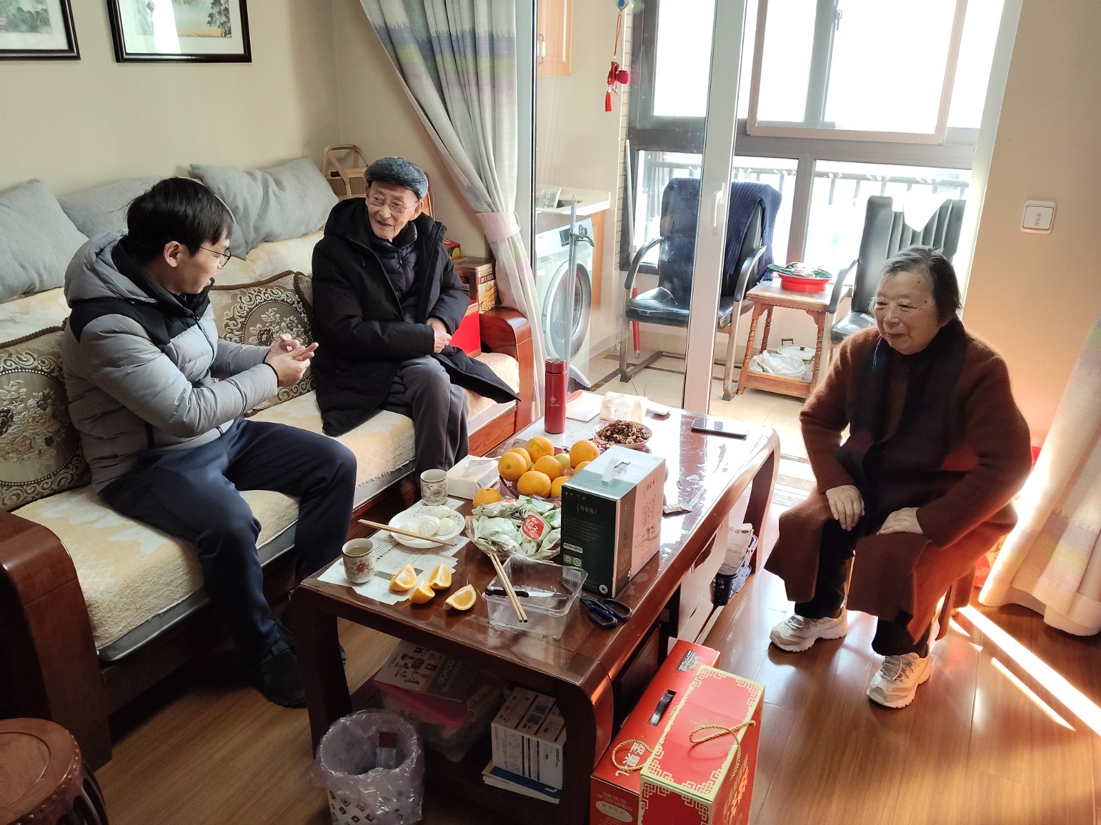 社区网格长们一行先后走访了冯庵卿、钱克强翁善纲等多位病弱老党员。每到一户,都与老党员促膝谈心,详细询问他们的身体状况、家庭生活和医疗保障情况,认真倾听他们的心声诉求,叮嘱他们要保重身体、注意保暖,并为他们送上牛奶、饼干、坚果等慰问品。同时,网格长们还向老党员们宣讲了党的最新政策和社区年度发展成果,感谢他们为党和社区事业作出的贡献,希望他们继续发挥老党员的政治优势和经验优势,为社区发展建言献策。