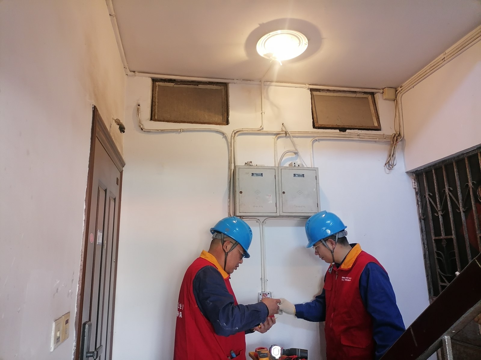 “楼道灯是居民夜间出行的‘安全指引’,尤其是老旧小区线路老化问题突出,必须彻底排查到位。”行动伊始,社区工作人员与仑东供电所红船志愿服务队、峰新红色文化志愿服务队成员组成专项排查小组,按照“逐栋排查、逐单元梳理、逐灯测试”的原则,对辖区内各小区楼道照明设施展开拉网式检查。排查过程中,队员们携带螺丝刀、测电笔等工具,爬楼梯、查线路,详细记录每一盏楼道灯的运行状况,对损坏不亮、闪烁无常的灯具逐一标记,现场进行拆解检修。针对线路老化、接触不良等问题,及时更换老化线路和零部件;对无法现场修复的故障灯具,建立维修台账,明确整改时限,确保“不漏一户、不落一盏”。居民朱大爷看到队员们忙碌的身影,感慨道:“以前晚上走楼梯总怕踩空,现在社区主动检修,心里踏实多了!”