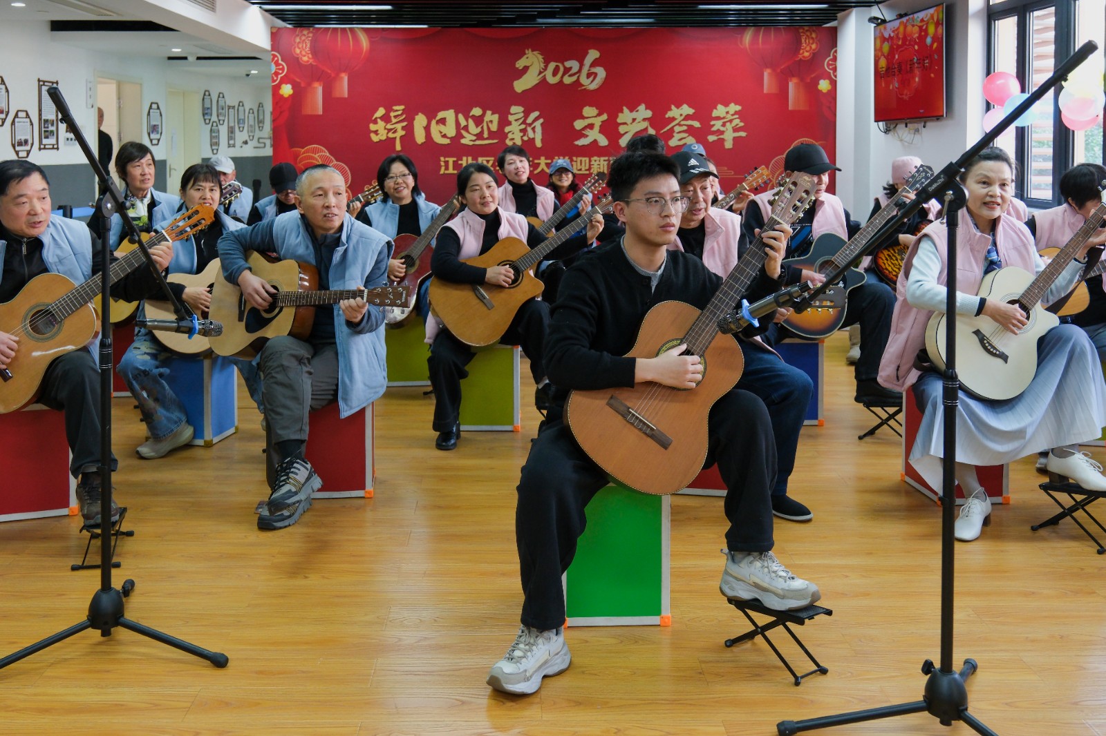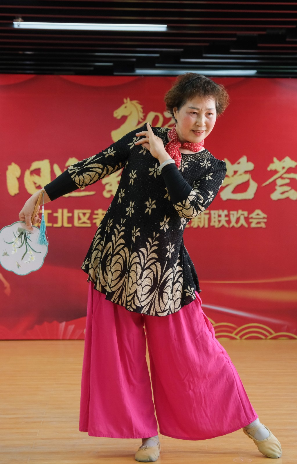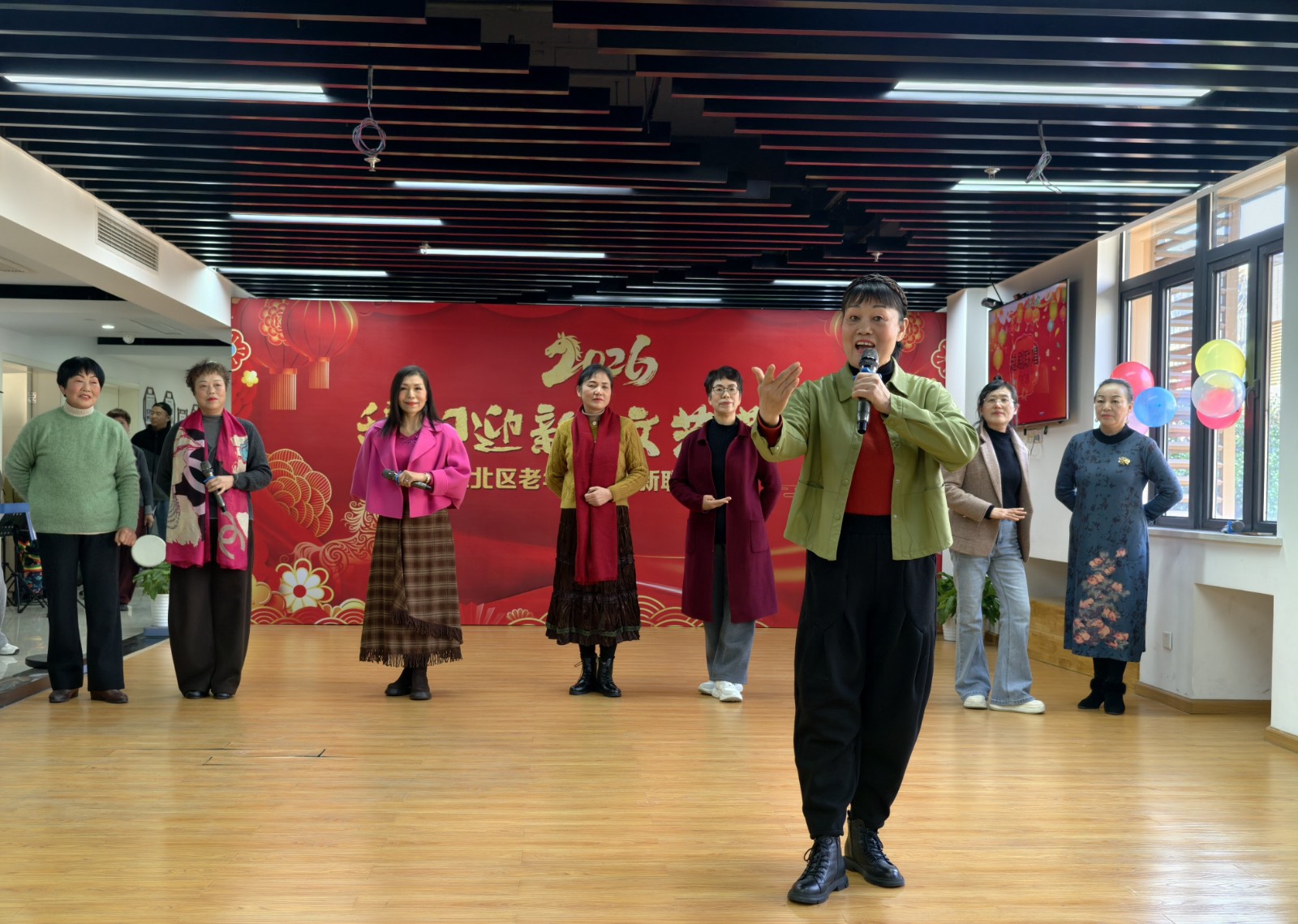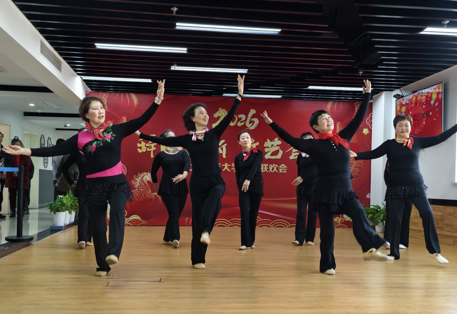 随着倒计时开启,大家一起喊出“十、九、八……三、二、一!新年快乐!”全场瞬间沸腾起来,江北区老年大学辞旧迎新校园联欢会正式开始。