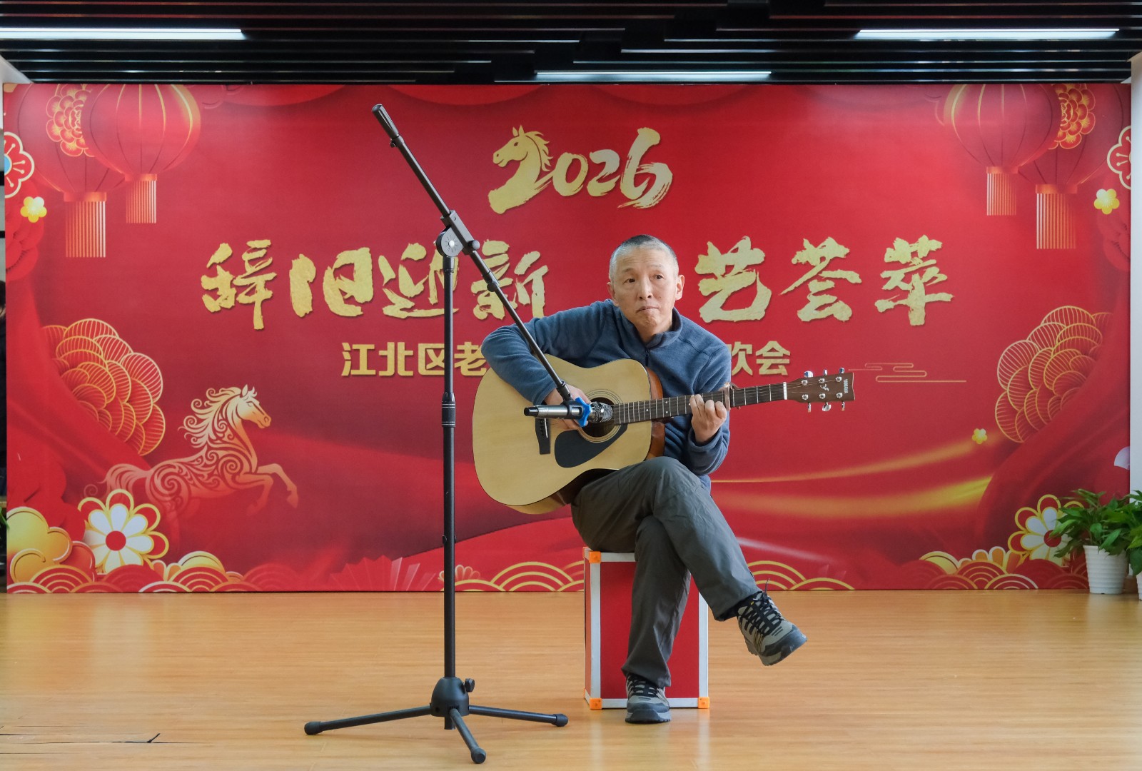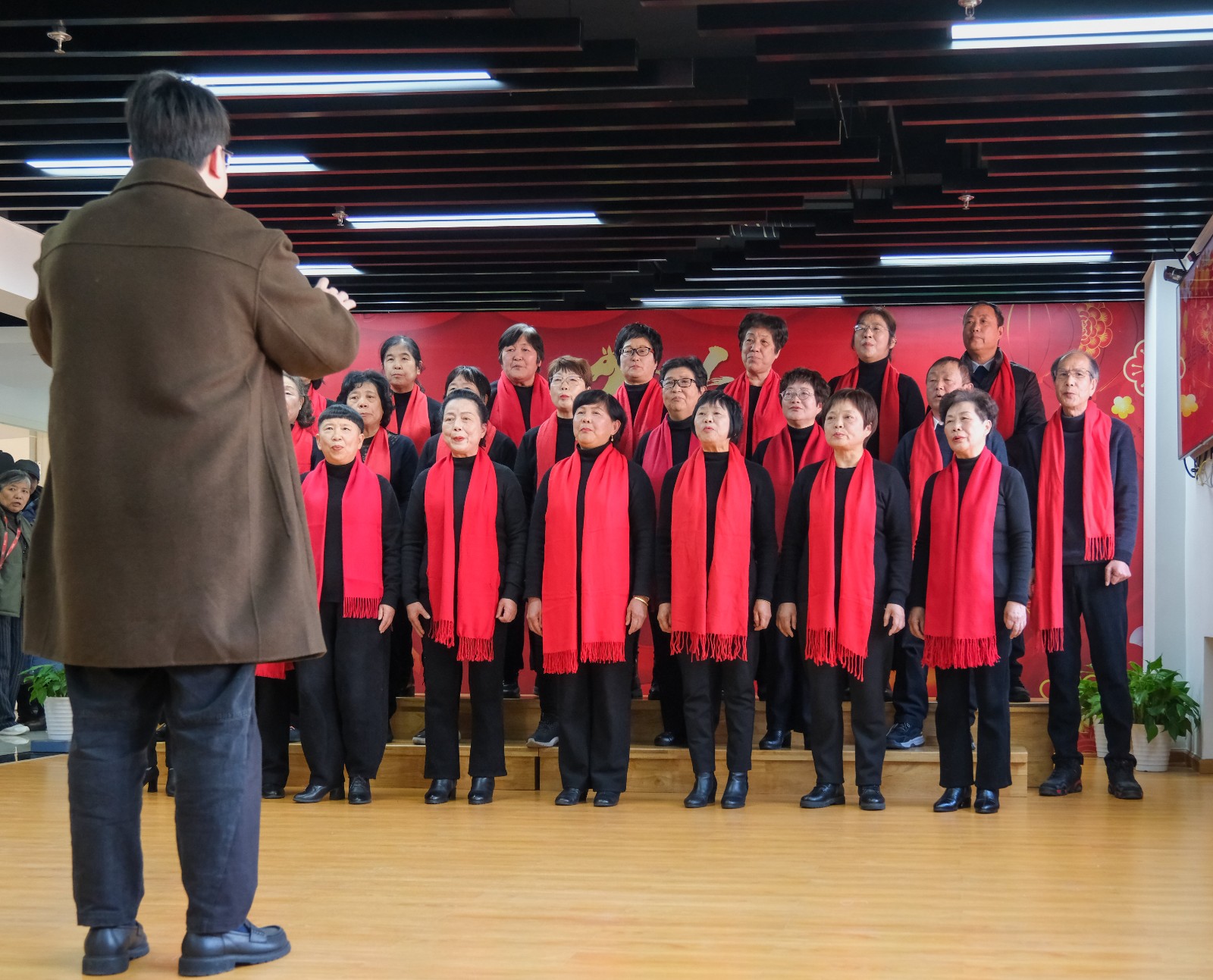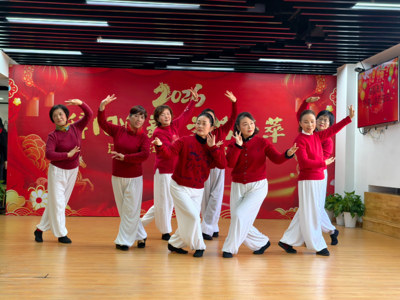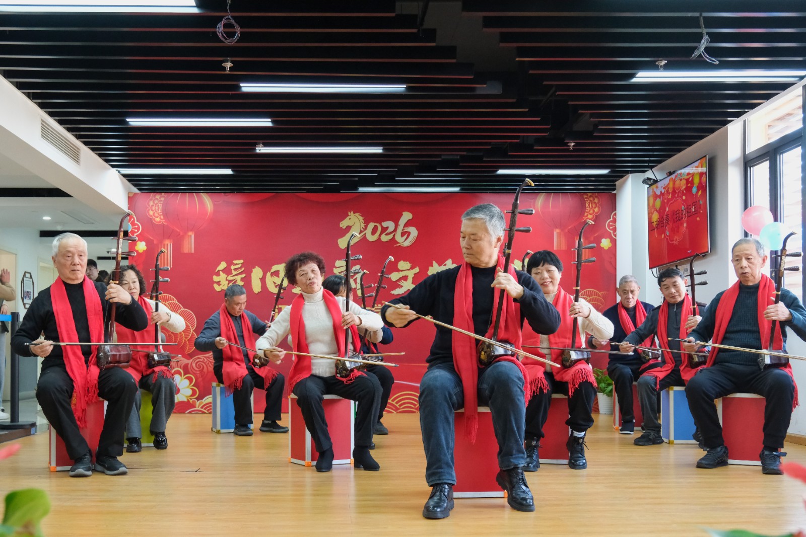 随着倒计时开启,大家一起喊出“十、九、八……三、二、一!新年快乐!”全场瞬间沸腾起来,江北区老年大学辞旧迎新校园联欢会正式开始。