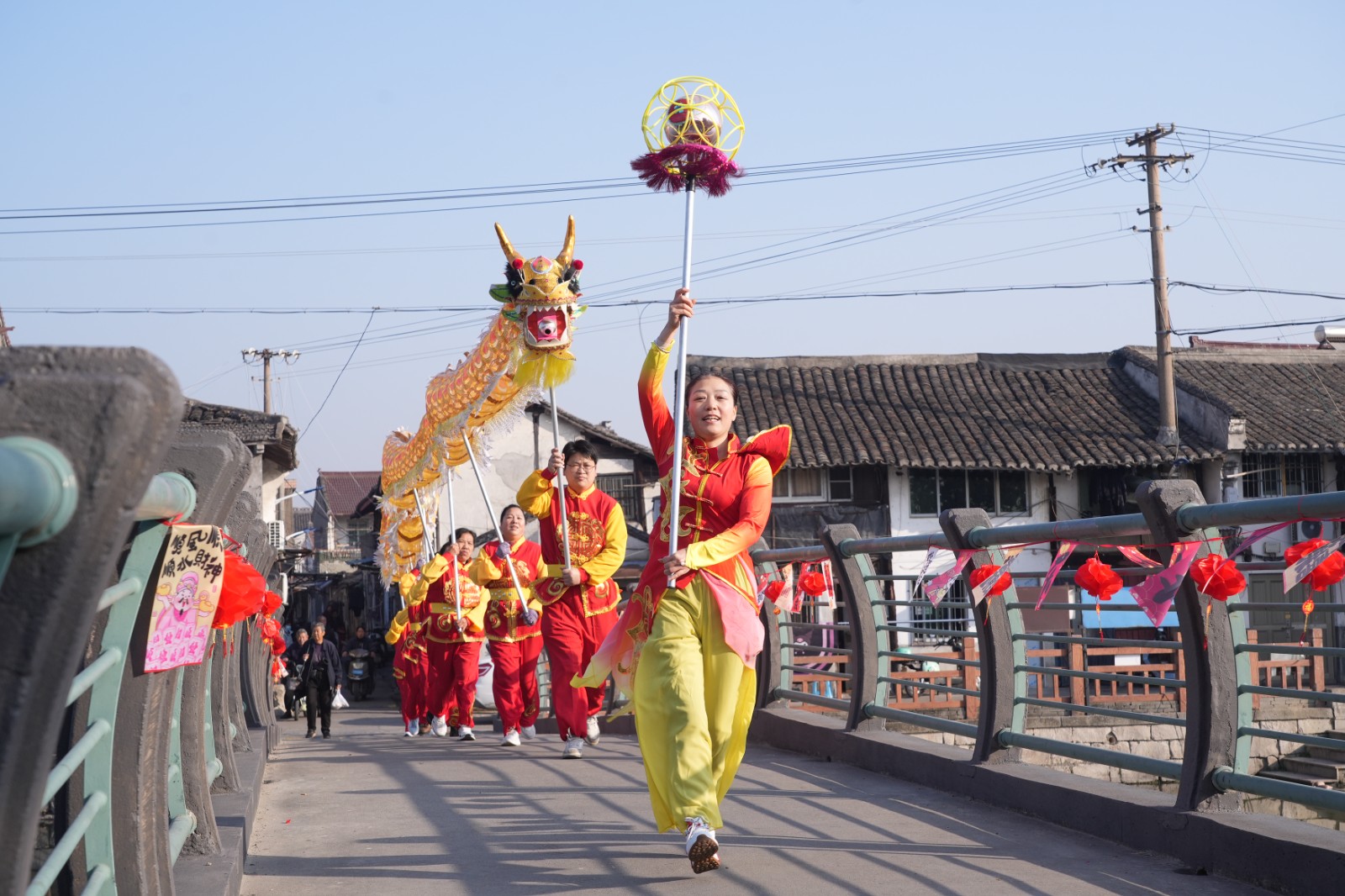 1月16日上午,在九龙湖镇思源社区南街广场,一条金色祥龙从桥上腾跃而来,精彩的开场舞龙表演瞬间点燃现场氛围。广场上,高约2米、憨态可掬的藤编龙形卡通作品格外亮眼。金龙与藤编龙交相辉映间,思源社区“同心共建暖家园 非遗传承启新篇”主题活动正式启幕。