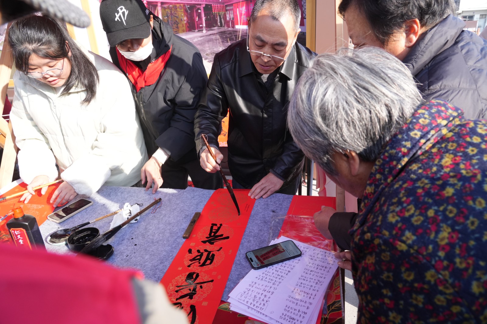 广场另一侧的新春集市同样热闹非凡。垃圾分类、平安宣传、爱心缝补、健康义诊等便民服务摊位前,来往居民络绎不绝;“思味货郎担”米馒头、“九锦姑娘”手作等摊位则洋溢着浓浓年味与温情。集市不仅直接呼应“思善暖群需”,更成为邻里互动、情感交流的温暖平台。