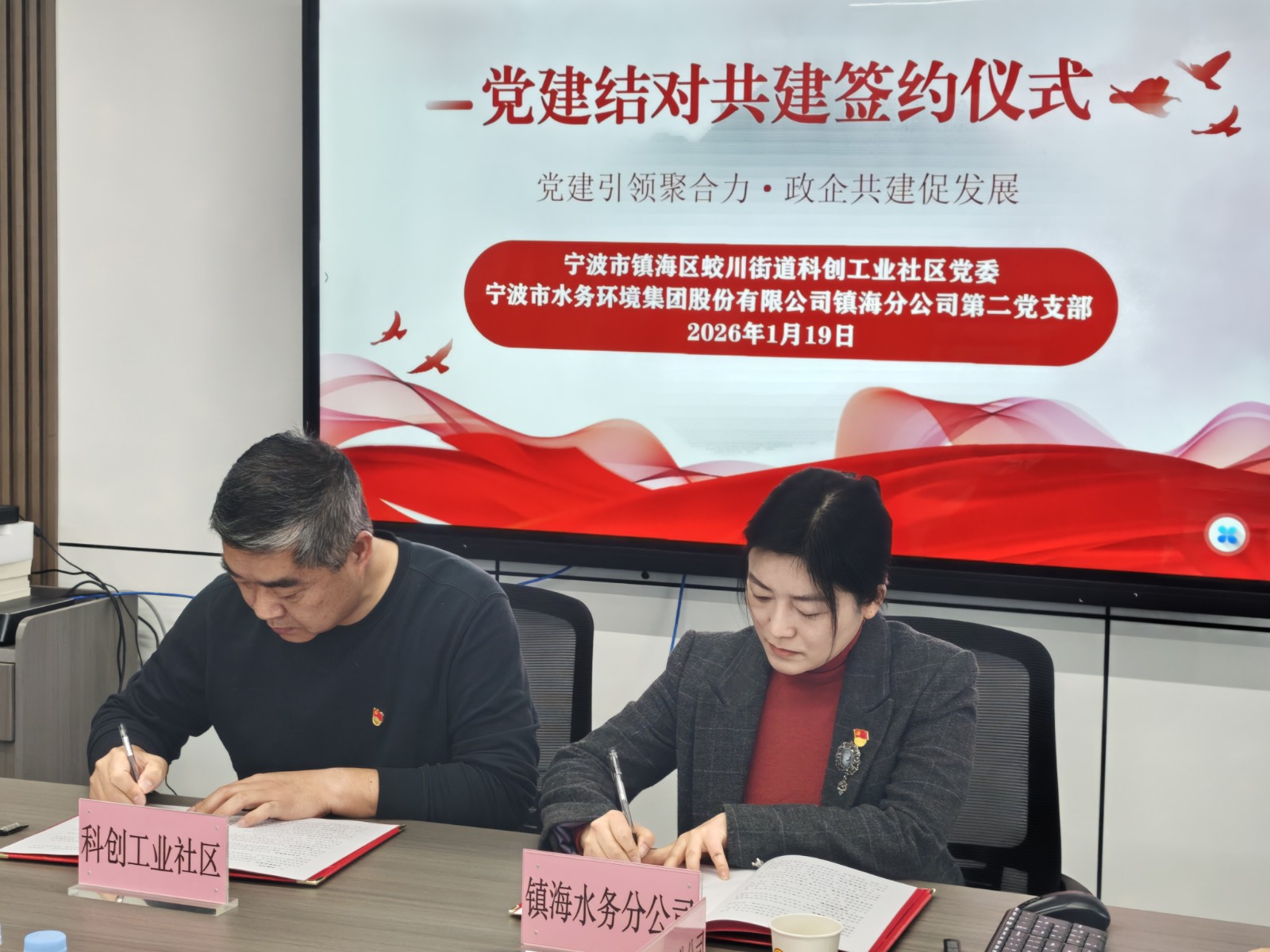 1月19日上午,科创工业社区会议室暖意融融,一场以“党建引领聚合力,政企共建促发展”为主题的党建结对共建活动在此举行。科创工业社区党委与宁波市水务环境集团股份有限公司镇海分公司第二党支部正式牵手,标志着政企合作在党建引领下迈向实质化、常态化。蛟川街道相关领导、多家园区及企业代表、社区网格员共同参与见证。