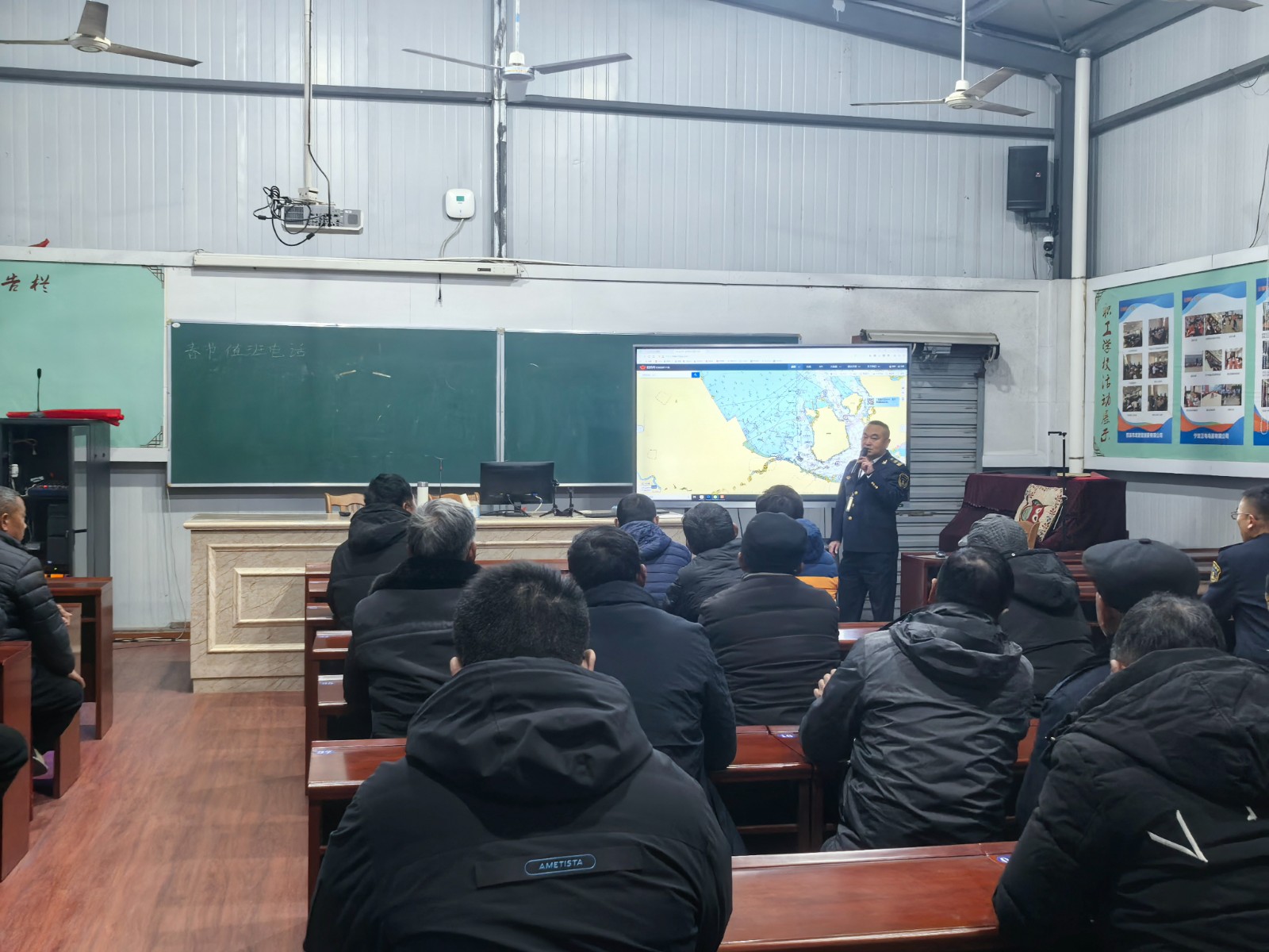 2026年1月20日下午,龙山镇30余名渔船船长、船员及渔业从业人员参加了一场安全生产专题培训。本次培训由龙山成校与宁波海事局余慈辖区联合组织,旨在针对冬季海上作业风险,提升从业者的安全意识和应急处置能力。