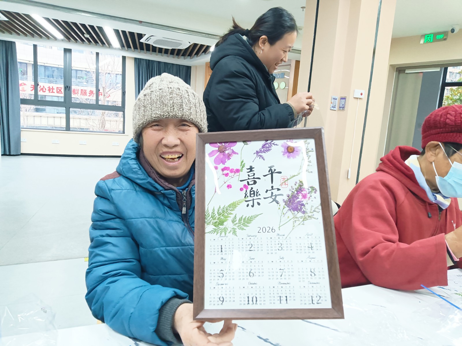 经过半个小时的精心拼贴,12份充满年味的台历作品渐次成型。当作品装入相框的瞬间,李阿姨轻抚台历感叹:“这比买的挂历更精致美丽,有温度,要放在客厅显眼的地方摆台!”