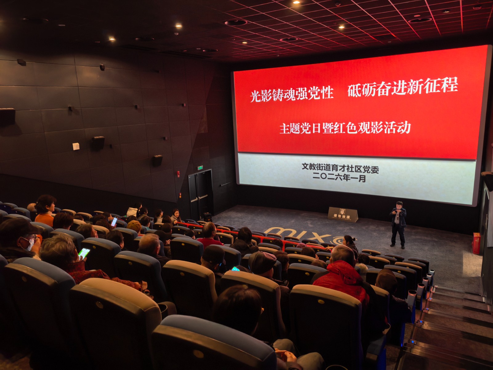 为强化党员理想信念教育,传承红色基因,丰富党员组织生活形式,近日,育才社区党委精心组织辖区党员集中观看红色主题电影,以一堂生动深刻的“电影党课”形式,引导广大党员从光影中汲取奋进力量。