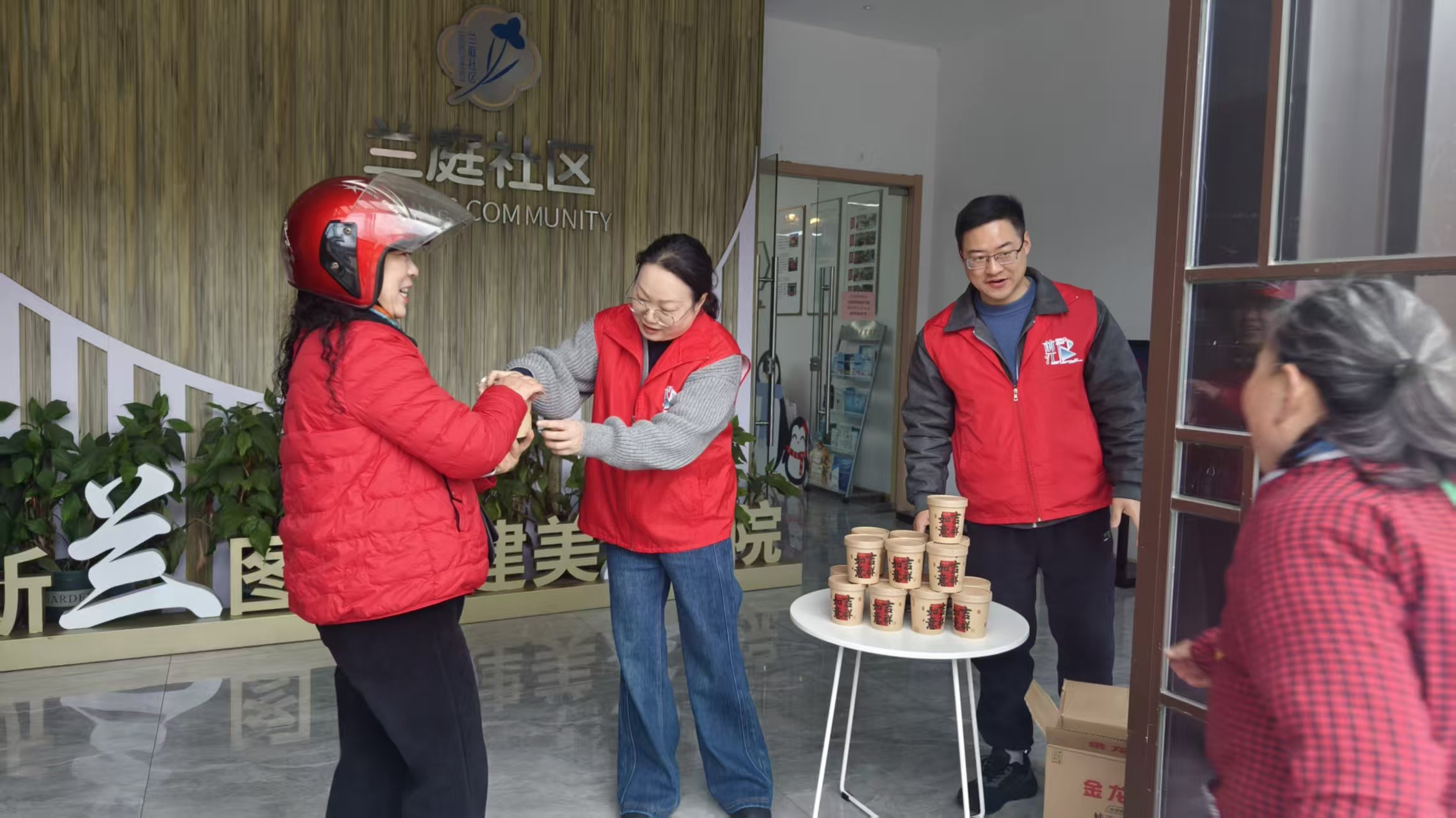 值得一提的是,今年的腊八粥特意装在印有“吉祥如意”“平安顺遂”“腊八安康”等字样的定制陶瓷杯中,杯身还印有兰庭社区的LOGO,既环保实用,又充满纪念意义,传递真挚祝福的同时,也让居民们感受到浓浓的归属感。网格员们在送粥时,还不忘结合冬季养生知识,叮嘱老人注意保暖、预防感冒,提醒户外劳动者做好防寒防护,注意出行安全,一句句贴心的问候、一碗碗暖心的热粥,让这个腊八节充满了温馨与年味。不少居民喝完粥后,特意将定制杯珍藏起来,纷纷表示这是一份特别的节日礼物。此次活动不仅让居民们感受到了传统节日的魅力,更拉近了社区、网格员与居民之间的距离,让社区的凝聚力在寒冬中悄然升温,也为即将到来的新春佳节奏响了温暖的序曲。