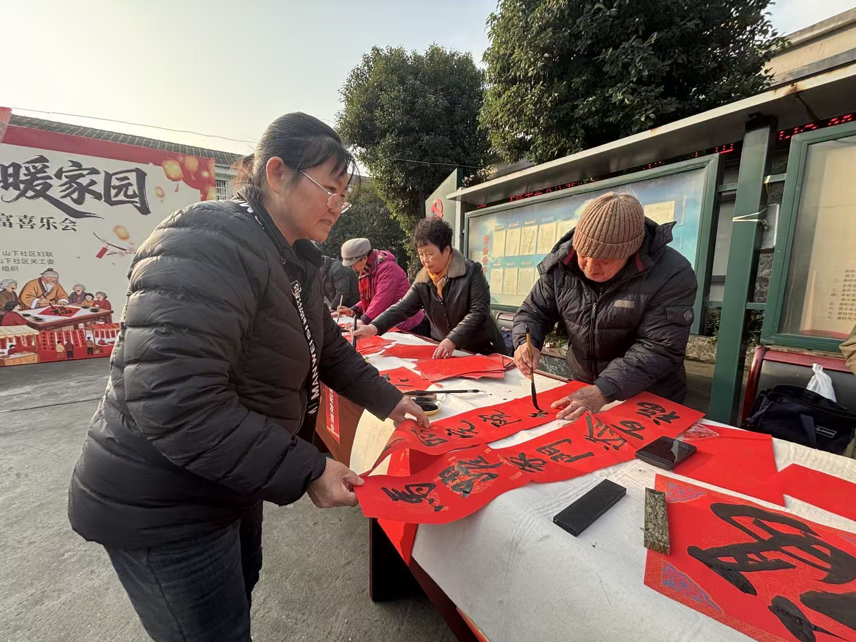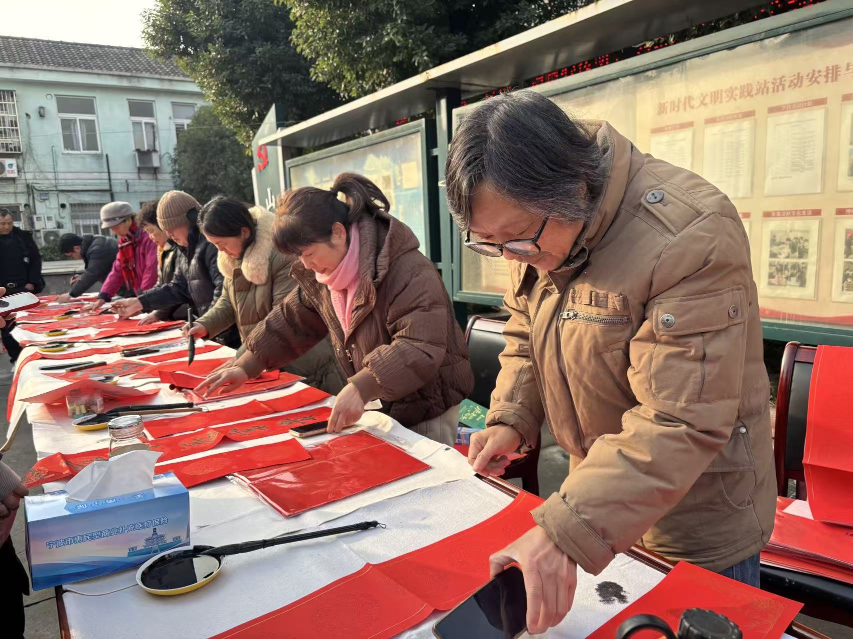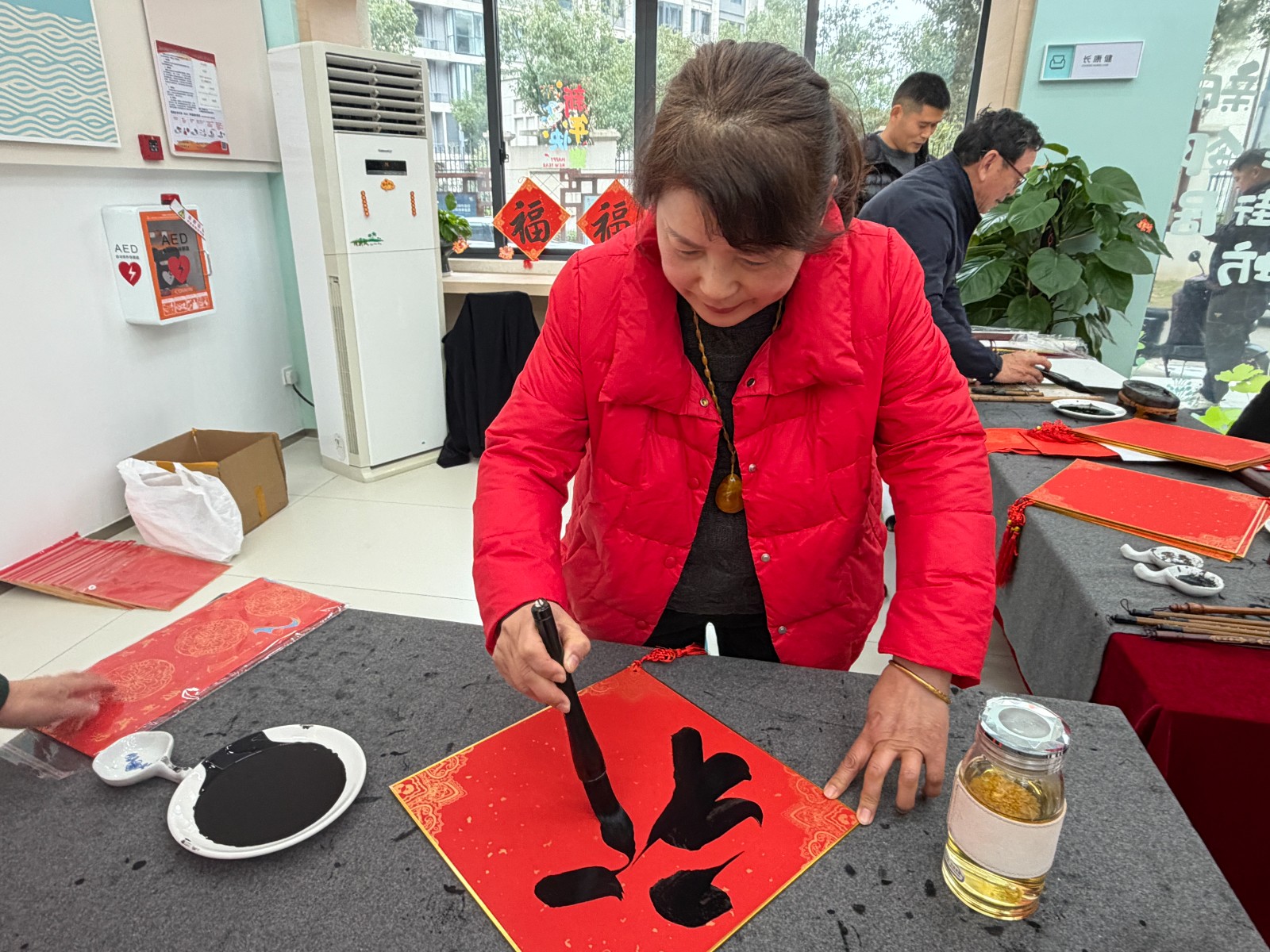 活动现场热闹非凡,书法老师们伏案疾书,隶、楷、行等多种书体各显神韵。“龙腾虎跃人间景,鸟语花香天下春”“福满家门添喜气,春回大地沐和风”,一幅幅寓意吉祥的春联新鲜出炉,大红的“福”字承载着对新年的美好期许,居民们手持春联笑意盈盈,现场洋溢着浓浓的年味与暖意。