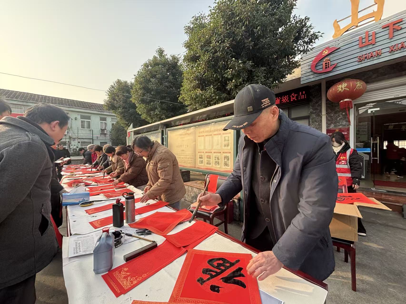新春将至,年味渐浓。近日,小港成校书法班携手竺山汲泉能人工作室的老师们,辗转浦山社区、青墩社区、长山社区、山下社区,开展“笔墨绘春 福暖家园”公益送福活动。红纸铺展、笔墨飘香,老师们挥毫泼墨,将满满的新春祝福凝于笔端,为居民们送上别样的“文化年货”。