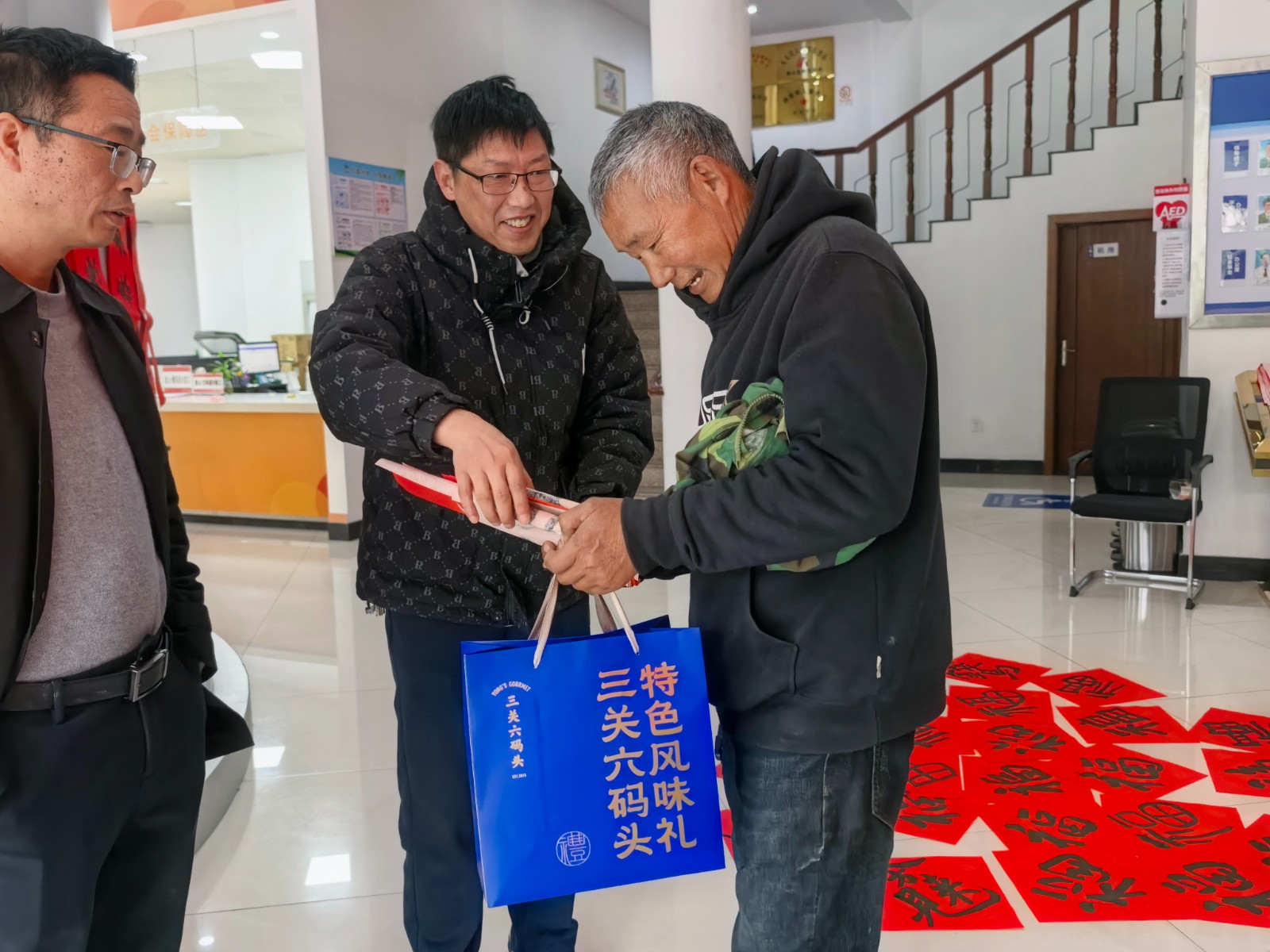 “平时工作忙,没时间准备年货,今天街道不仅给我们送慰问品,还送春联,真是太贴心了。”一位环卫工人拿着刚写好的春联高兴地说。快递骑手小李也表示:“能在春节前收到这样特别的礼物,让我们这些外来务工人员感受到了家的温暖。”