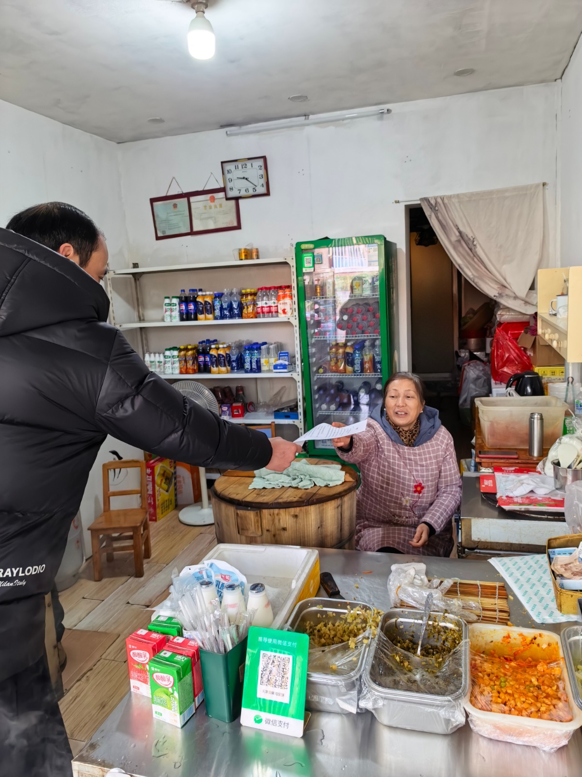检查工作分两个区域进行。在校园内,重点检查用电与防盗,检查人员查看了电表间、重要用电节点、办公室电器、各楼道转帘闸门等,一一确认安全状况。在民权路门面房,重点检查了各租户的用电与用火,查看了火源、用电接线等,当面纠正了不规范的做法,同时向各租户发放了《安全告知书》。