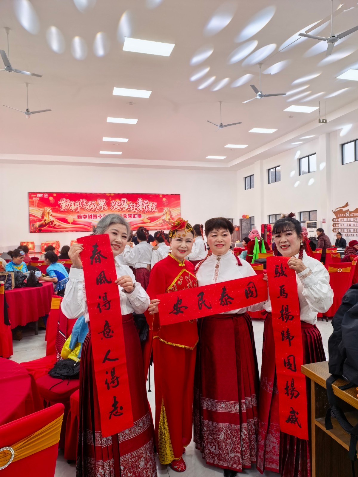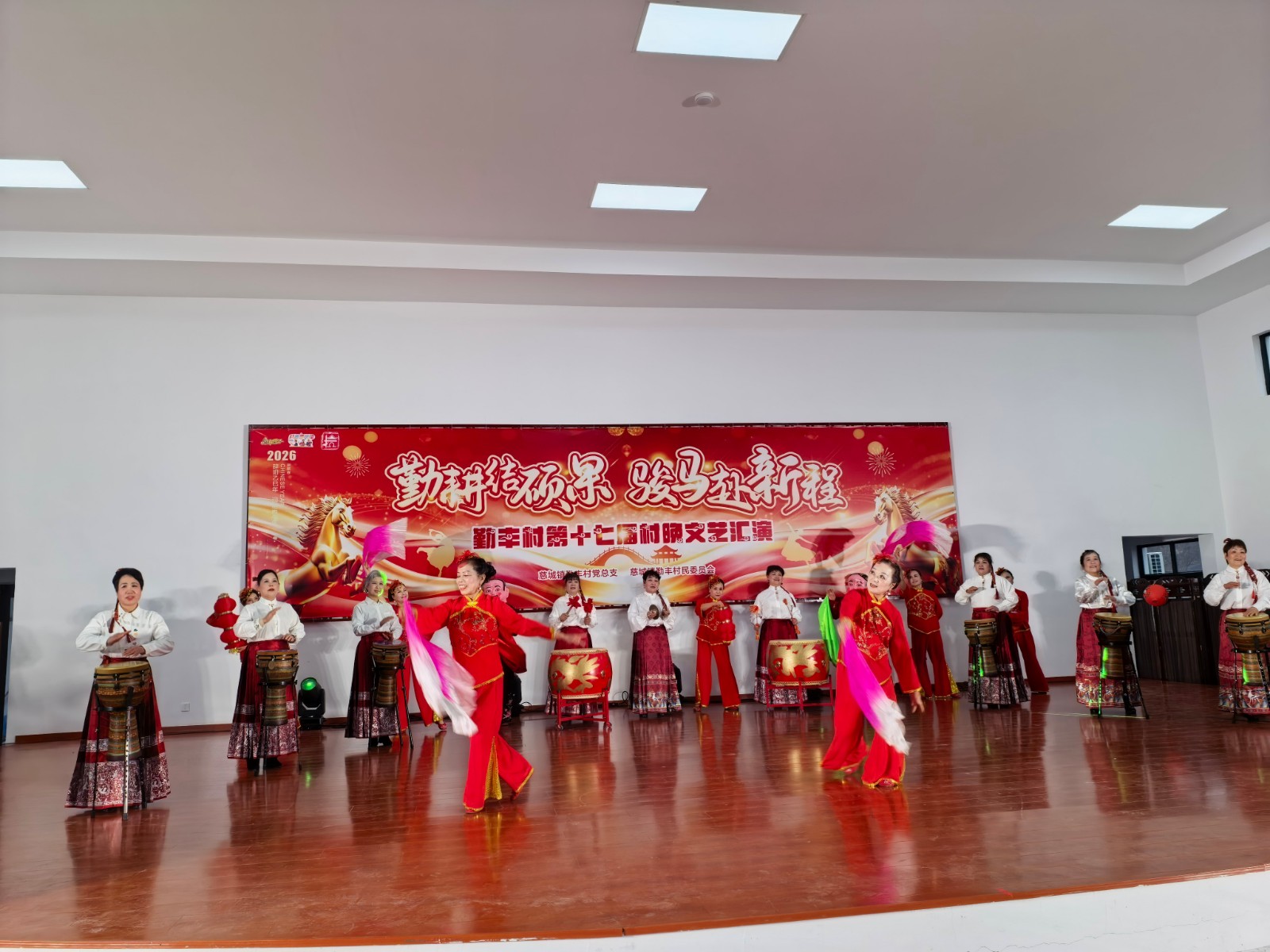 本次村晚,以“勤耕结硕果,骏马赴新程”为主题,以慈城镇党委副书记夏冠同志热情洋溢的祝词为开始,以勤丰村乡风文艺队、勤丰村乡风舞蹈队等为主力,同时邀请上岙、黄山、杨陈以及镇老年学校的慈鼓俱乐部、合唱班等团队,共演出12个节目,全程欢声笑语,台上台下共演春节联欢。