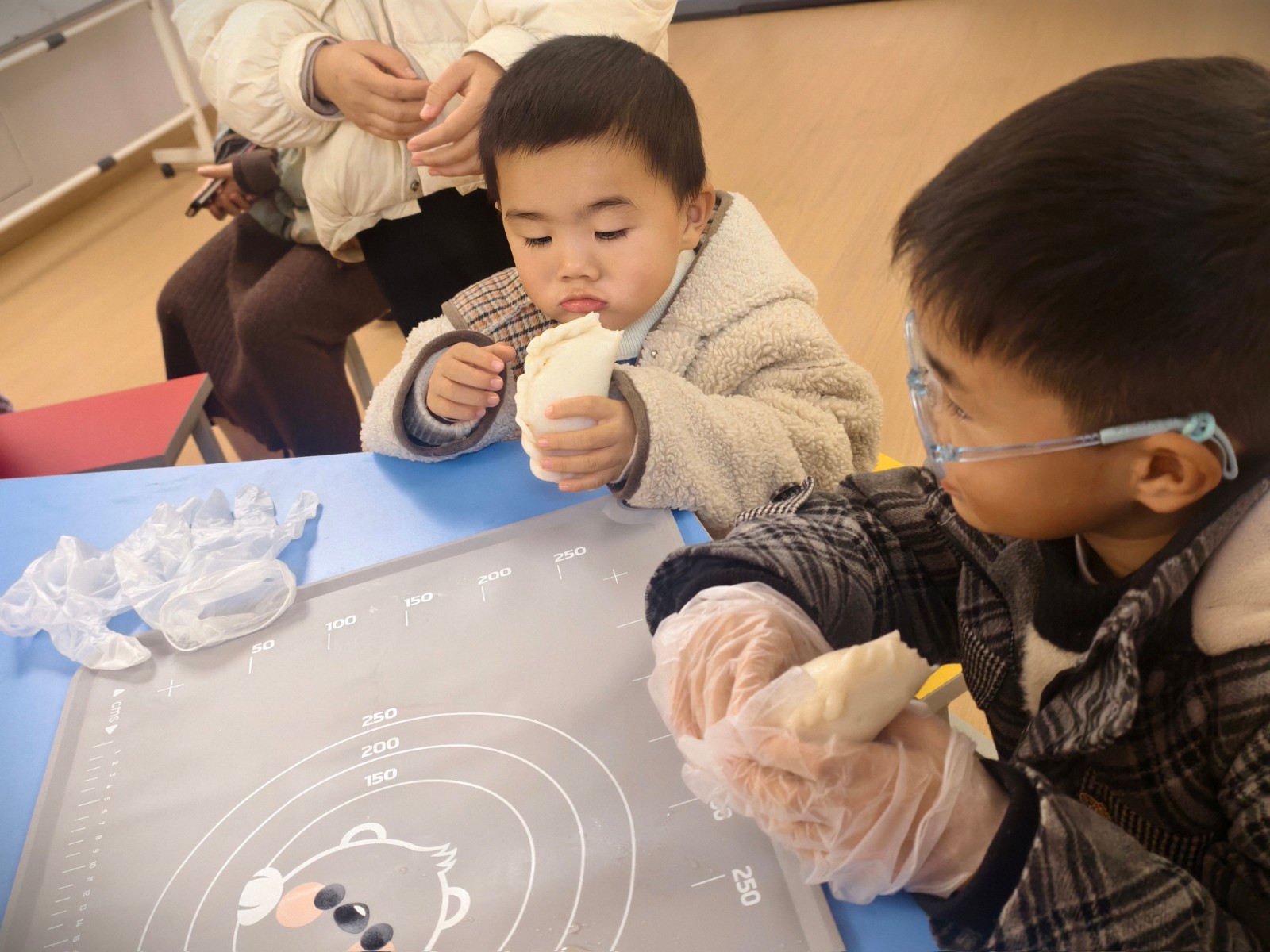 活动中,孩子们不仅了解了丰富的春节习俗,还聆听了年糕与年糕饺背后的美好寓意——年糕寓意“年年高升”,形似元宝的年糕饺则象征着财富与团圆。在实践环节,孩子们在家长的陪伴下,学习将制成的年糕团用手擀面皮,包入咸菜、榨菜、芝麻等传统馅料,再亲手捏合成饺子的形状,全程体验制作传统美食的乐趣。