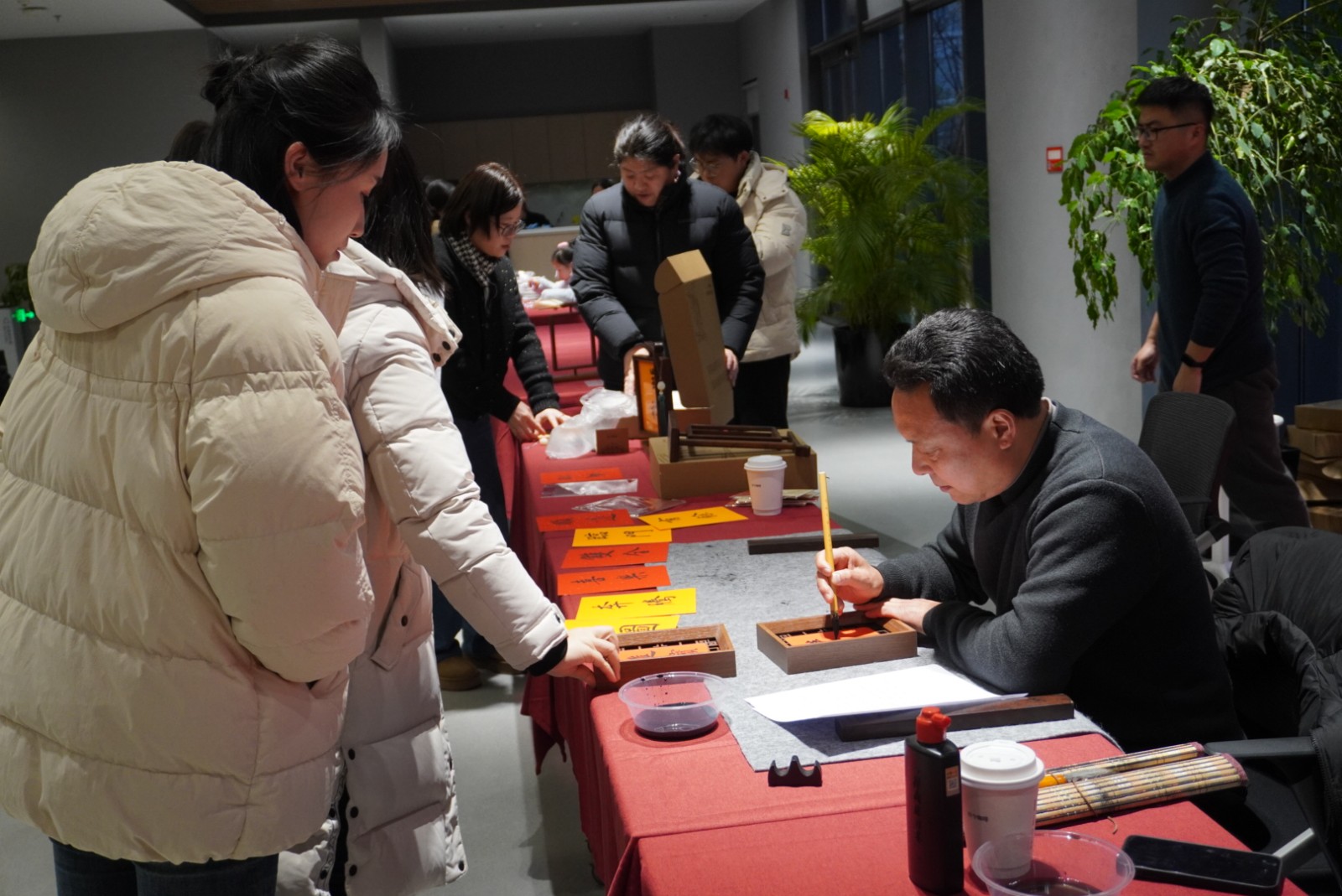 2月6日下午,甬江实验室活动室内暖意融融,墨香四溢。联兴社区党委与甬江实验室联合举办的“联建迎新春 墨香暖人心”新春送福活动在这里温情上演,来自丁修明书法工作室的书法老师现场挥毫泼墨,为实验室职工送上浓浓的新春祝福。