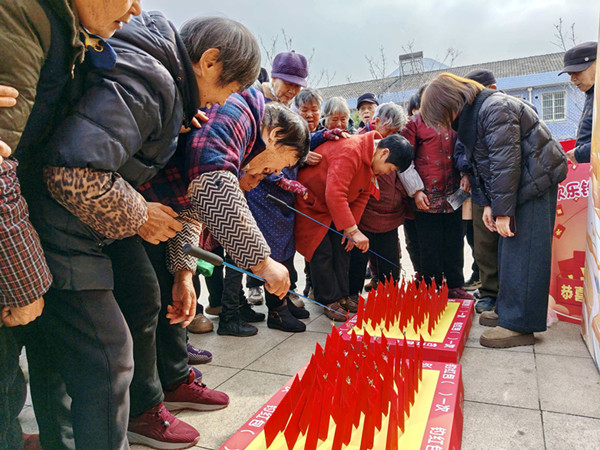 随着活动渐入高潮,“钓红包”游戏区不时爆发出欢呼声。一位小朋友高高举起钓到的红包,兴奋地朝家人挥舞:“外婆你看,我钓到好运气啦!”欢呼声顿时感染了四周的观众。