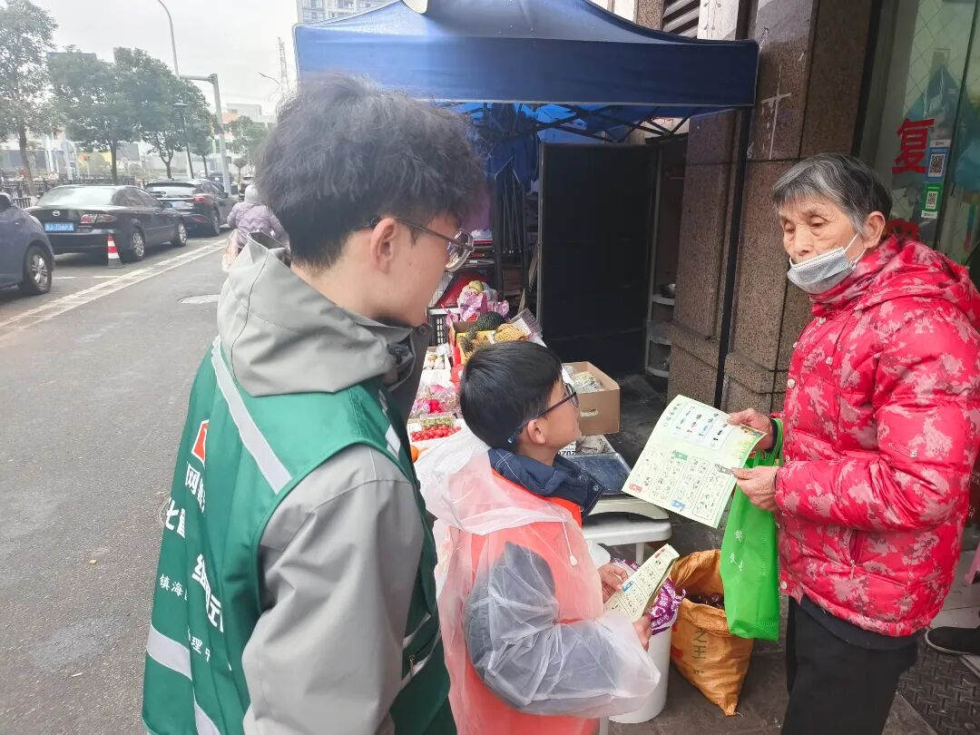 随后“垃分少年”们身着统一标识,分成若干小组,化身“环保宣传员”,兵分三路开展全覆盖宣传。在小区垃圾督导点位,他们主动协助桶边督导员,耐心向居民讲解分类标准,纠正不规范投放行为,引导居民养成“分类投放、从我做起”的良好习惯;走进沿街商铺,孩子们礼貌上前,向商户发放垃圾分类宣传手册,呼吁商户主动践行环保责任,做好店内垃圾规范分类,带动经营户共同参与社区环境治理;在辖区聊天角,孩子们围在居民身边,用通俗易懂的语言分享垃圾分类小知识,与居民亲切互动,让垃圾分类理念在欢声笑语中走进千家万户。