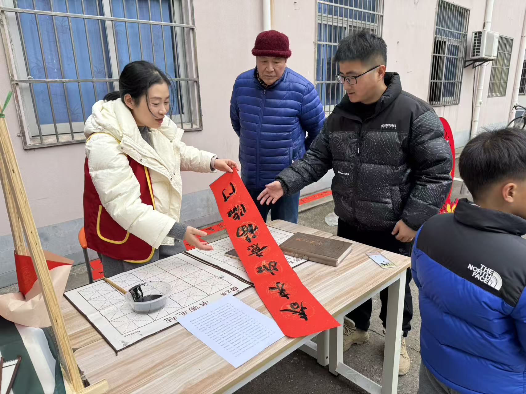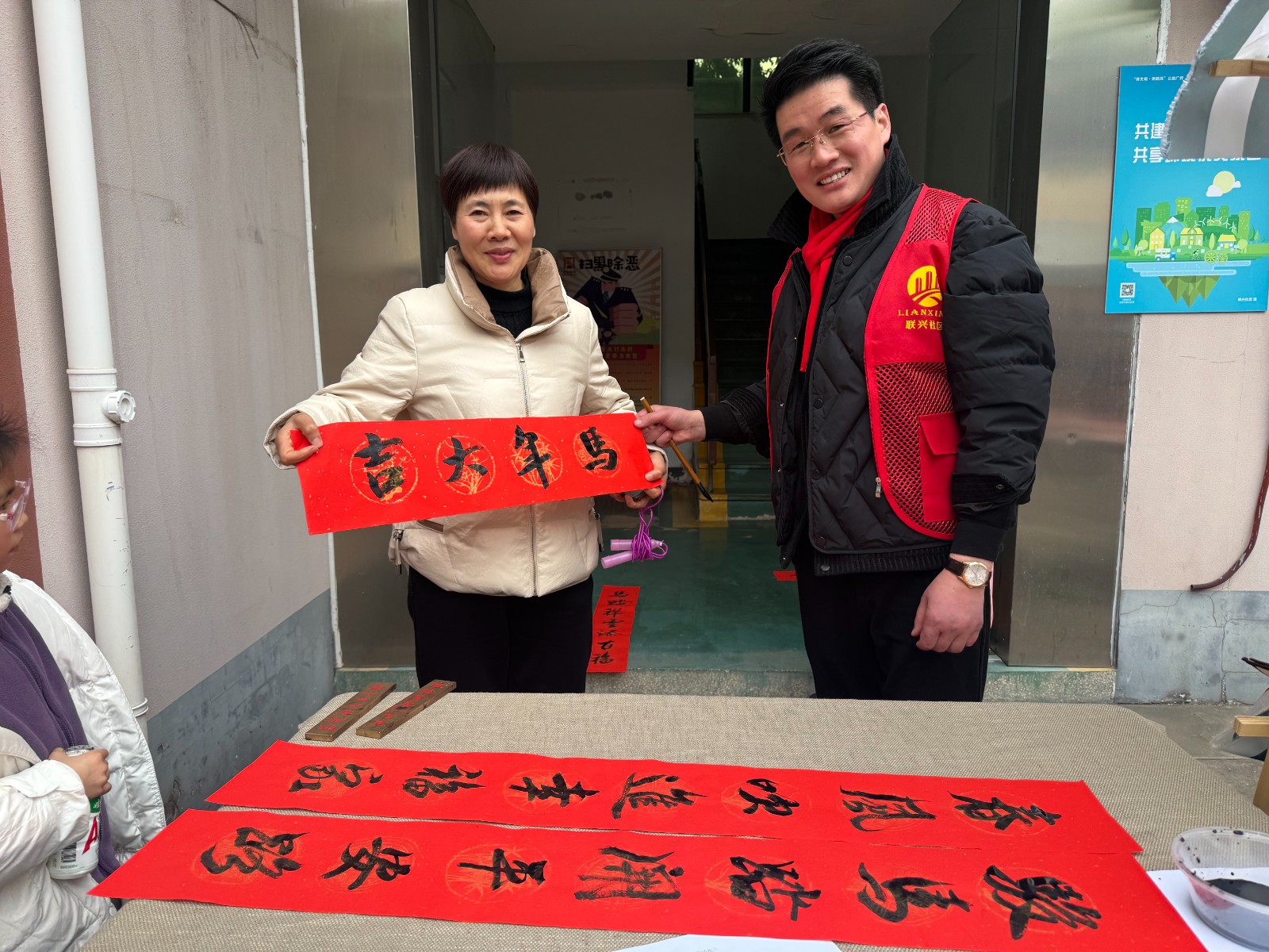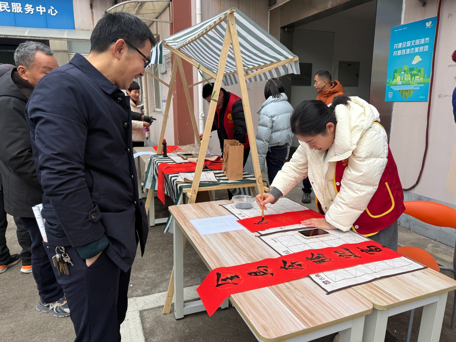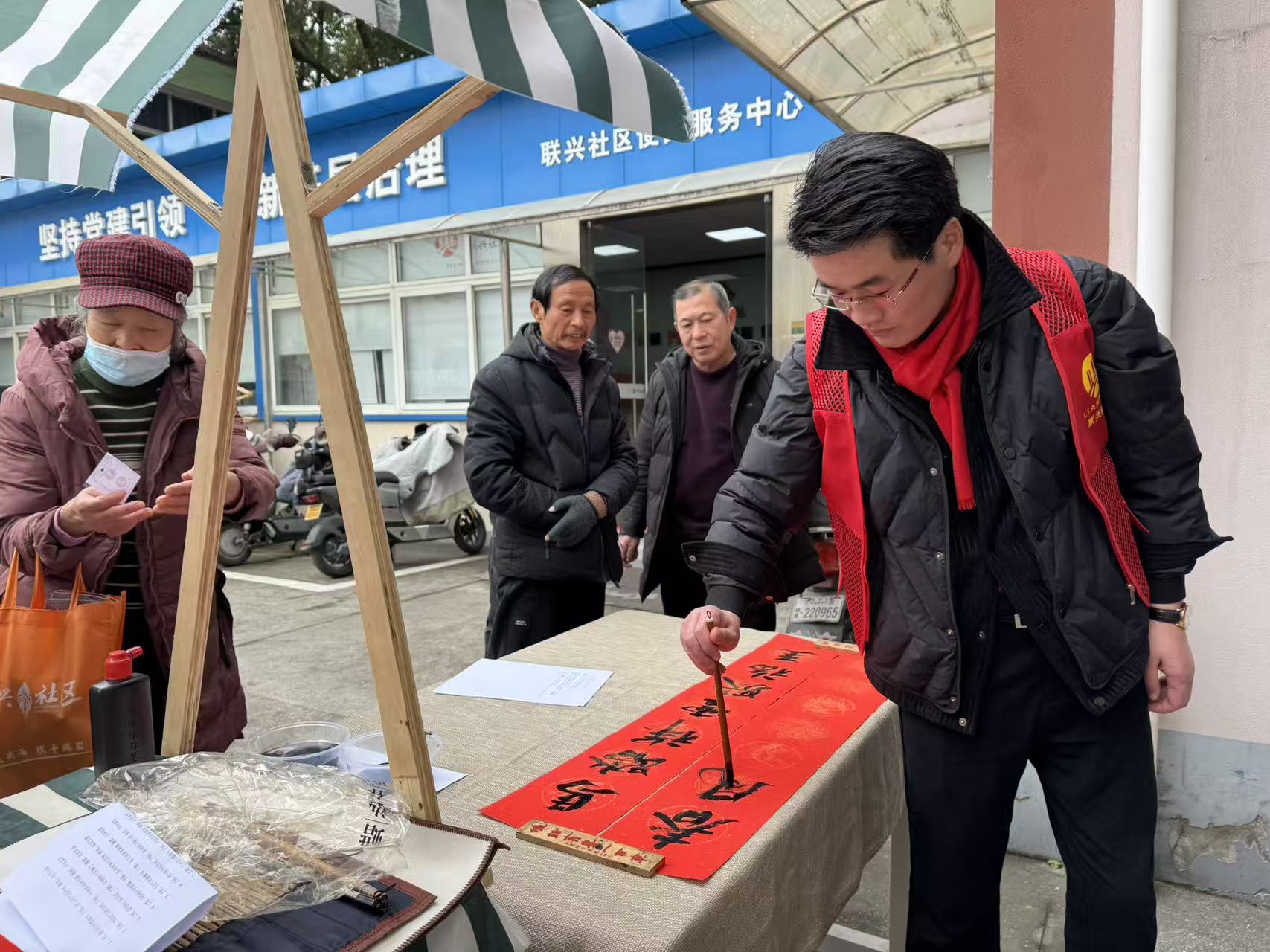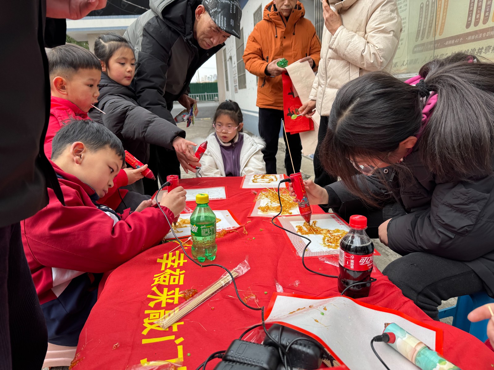 文化体验区墨香飘溢。社区特邀中国书法家协会会员丁修明老师、浙江省书法家协会沈露瑶老师现场挥毫,一幅幅寓意吉祥的春联和饱满的“福”字在笔尖流淌,将美好的祝福传递给每一位居民。一旁的糖画制作摊位上,小朋友们目不转睛地看着糖浆如何变成栩栩如生的图案,并亲手尝试,甜蜜的技艺传承令人回味。