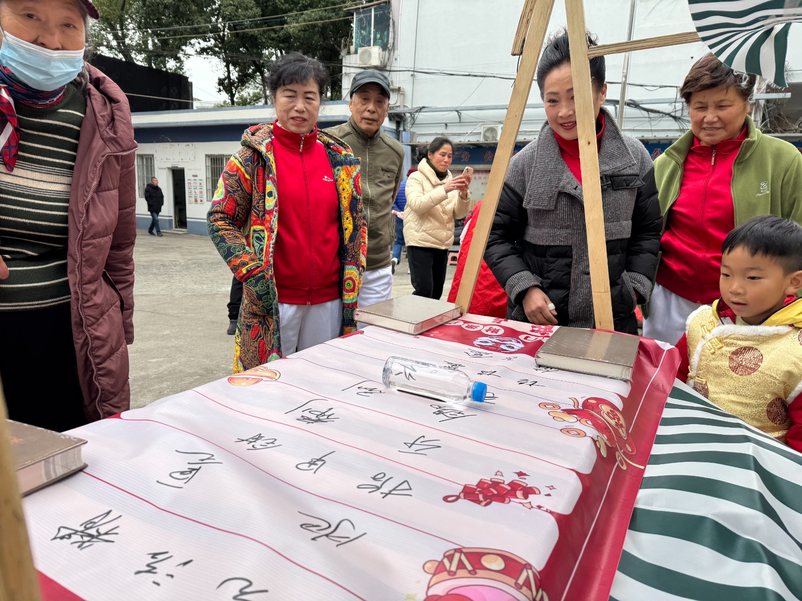 热场之后,各具特色的游园摊位前很快聚满了兴致勃勃的居民。在“新春套套乐”区域,大人们手持套圈,专注地瞄准蔬菜,孩子们则跃跃欲试,争相套取心仪的零食,欢笑声与喝彩声此起彼伏。“新春滚滚乐”更是趣味横生:居民将矿泉水瓶沿铺满礼品标识的布面滚动,滚到哪样就能把哪样礼品带回家,简单而刺激的游戏让大人小孩都乐在其中。