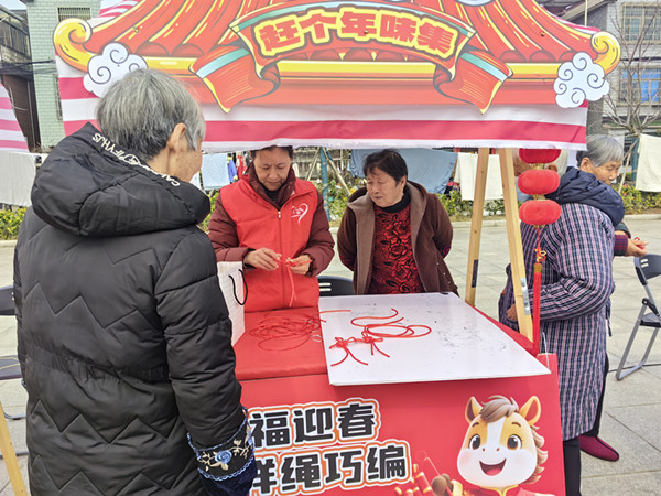 小年将至,年味渐浓。为弘扬中华优秀传统非遗文化,营造喜庆祥和、邻里和睦的节日氛围,2月10日,陈华浦社区在慈孝广场开展“祥绳巧编 迎春送福”手工培训,吸引了众多居民热情参与。