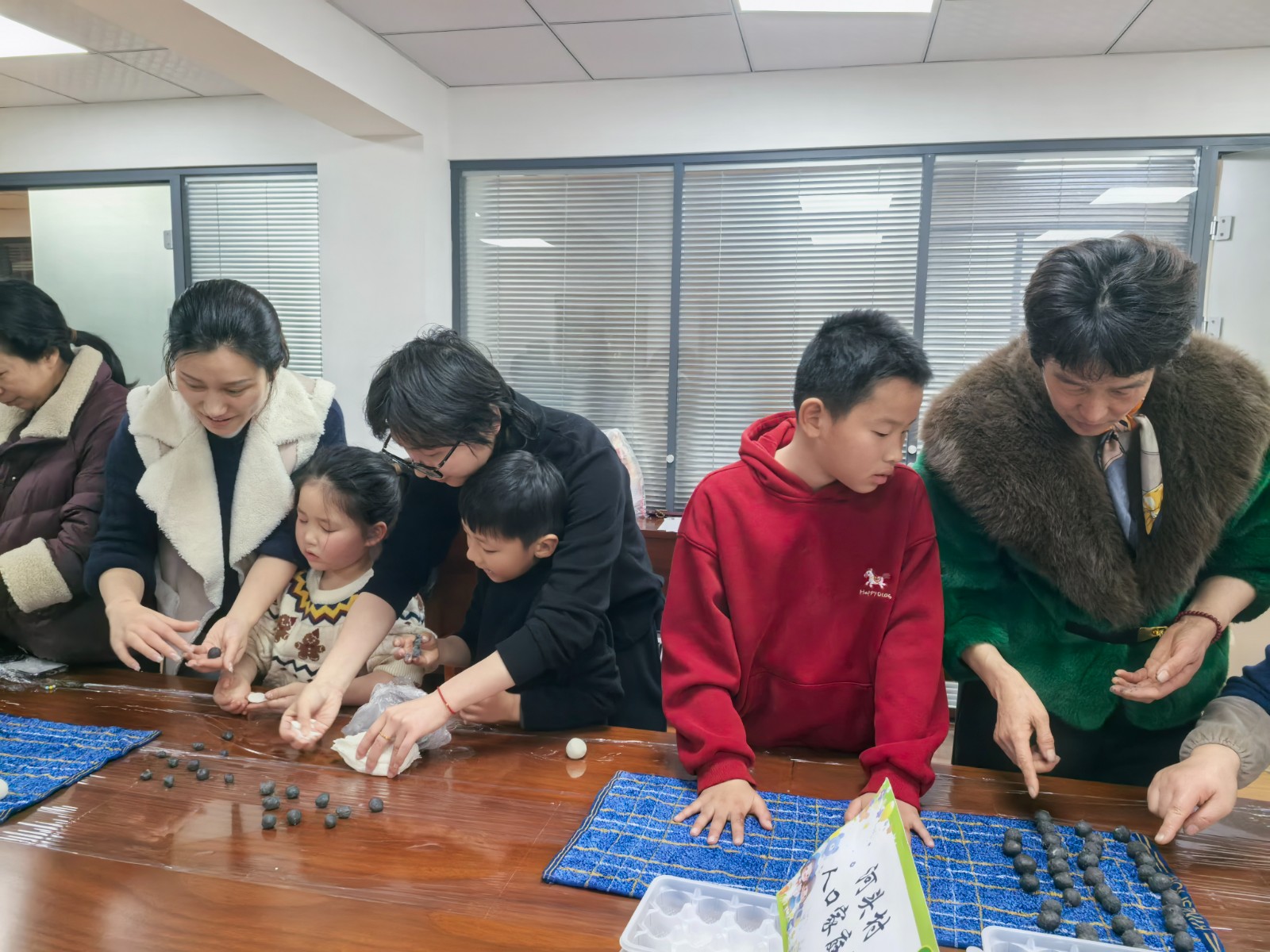 活动现场暖意融融,工作人员早已备好糯米粉、黑芝麻馅、豆沙馅等食材和工具。在工作人员的简单讲解后,亲子包汤圆环节正式开启。家长们带着孩子分工协作,有的揉制糯米团,将细腻的面团搓成圆润的小剂子;有的精心裹馅,把香甜的馅料包入其中,捏合、搓圆,一个个形态各异的汤圆在大小手中渐渐成型。孩子们兴致勃勃,跟着家长认真学习,指尖沾满糯米粉也毫不在意,欢声笑语间,满是温馨的亲子情谊和浓浓的节日气息。