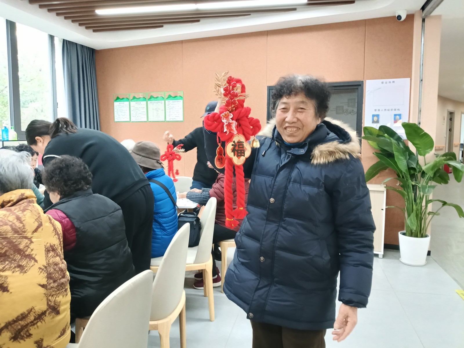 不一会儿,一个个造型美观、色彩鲜艳的万字结就在老人们手中诞生了。这些亲手制作的挂饰,不仅装点了生活空间,更寄托了大家对新年“万事如意”、“福气满满”的美好期盼。看着自己得意的作品,李阿姨高兴地说:“这个活动真好。既动了手,动了脑,又能把喜气带回家,特别有意义!”