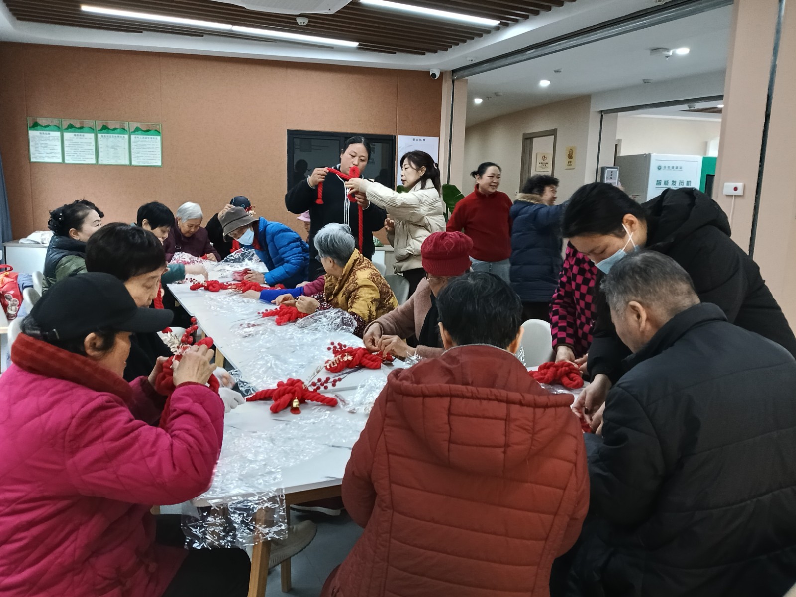 春节刚过,即将迎来元宵,大家还沉浸在节日的喜庆气氛当中。225日,庄桥街道天沁社区在居家养老服务中心二楼开展了中老年万字结挂饰制作活动。