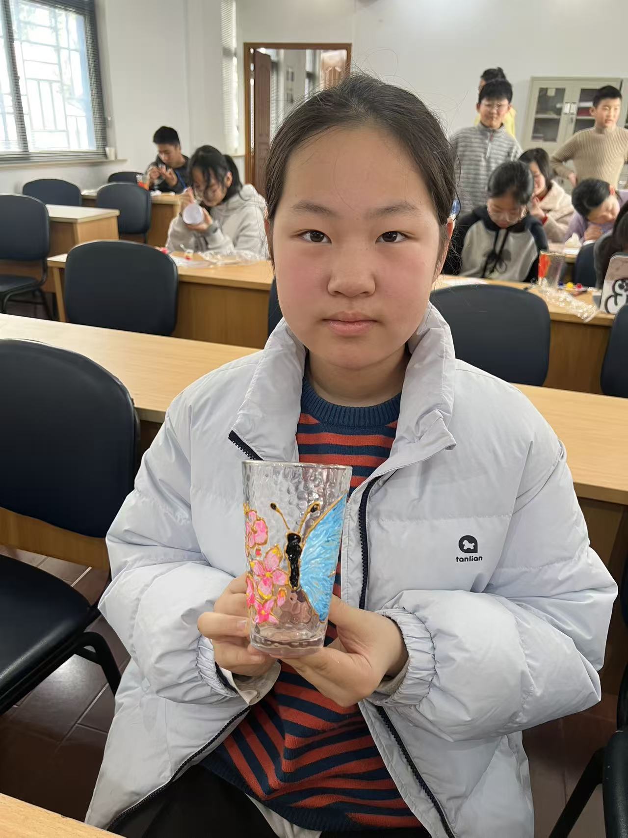 活动最后,孩子们手捧自己绘制的玻璃杯,一起合影留念,定格下这美好而温暖的瞬间。社区负责人严书记表示,未来将继续开展丰富多彩的文化活动,营造和谐友爱的社区氛围,让每一位居民都能感受到“家”的温暖。