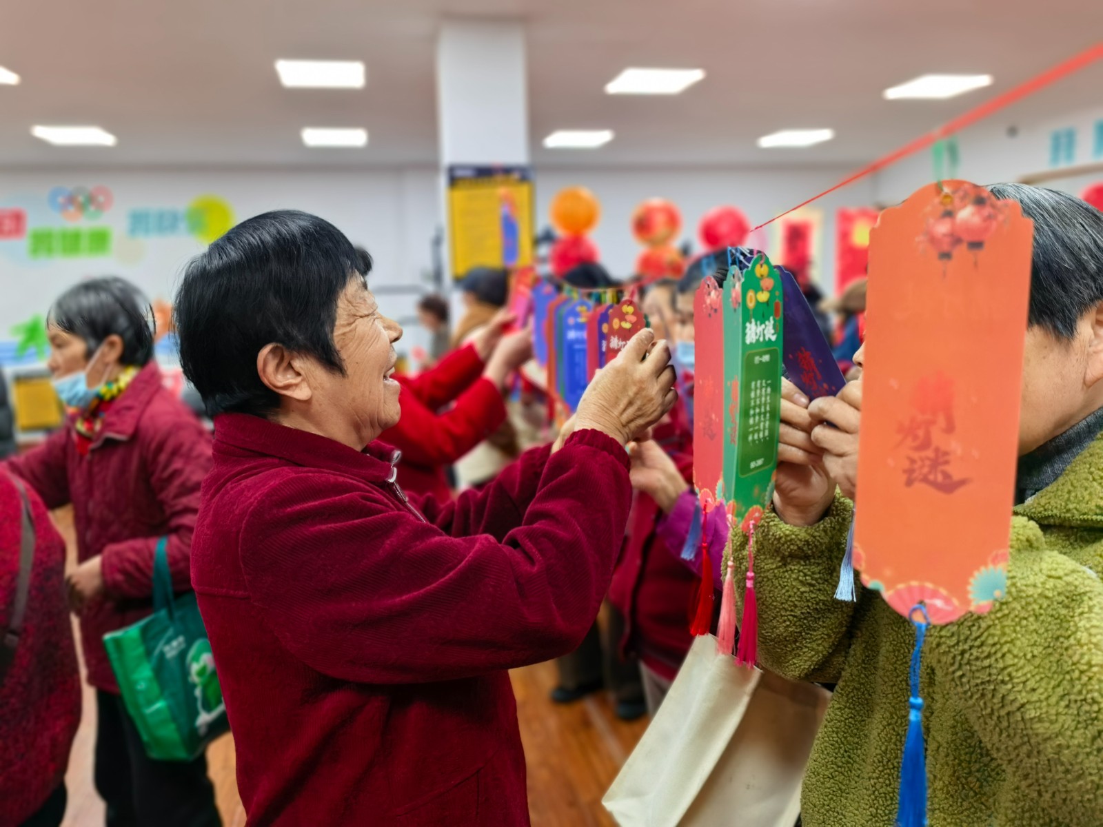 走进活动现场,彩色灯谜挂满了活动室,仔细一看,谜面全是“干货”:“天生大肚能容物,吃饭要吃剩饭菜。”(打一垃圾桶)。志愿者李阿姨站在灯笼下琢磨了一会儿,突然一拍手:“这不就是厨余垃圾桶嘛!”猜中谜底,她笑着从社区网格员手里接过一份小礼品。旁边的志愿者们也三五成群,有的仰头读题,有的低头讨论,猜对的有奖品,猜错的哈哈一笑,气氛轻松又热烈。