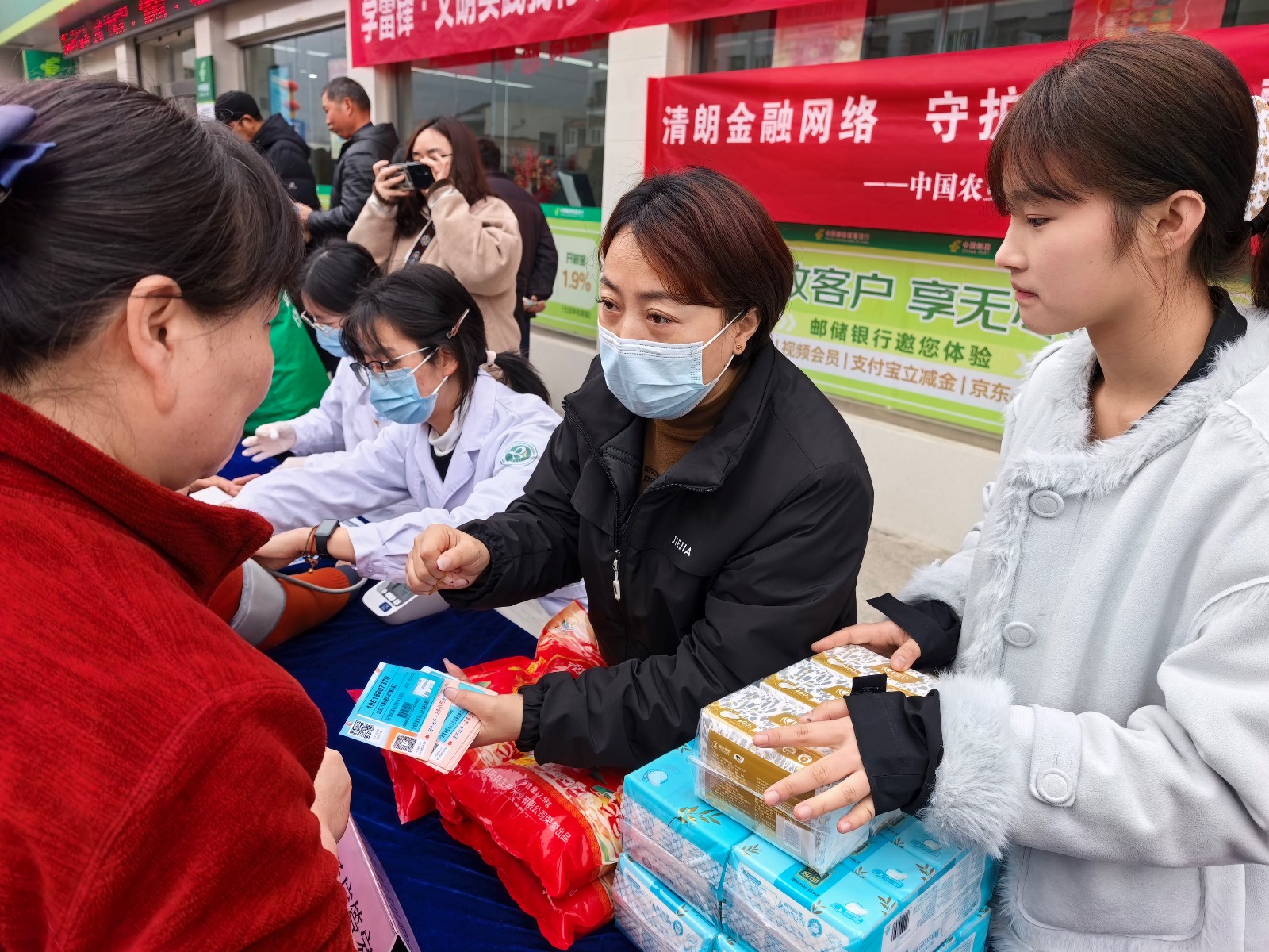 活动现场人头攒动、暖意融融,十余个服务摊位依次排开,涵盖健康义诊、爱心理发、消费维权、通信管家、垃圾分类、防灾减灾、金融服务、平安法治等多个领域,精准对接居民多样化需求,吸引了过往居民驻足参与,现场一派热闹有序的景象。