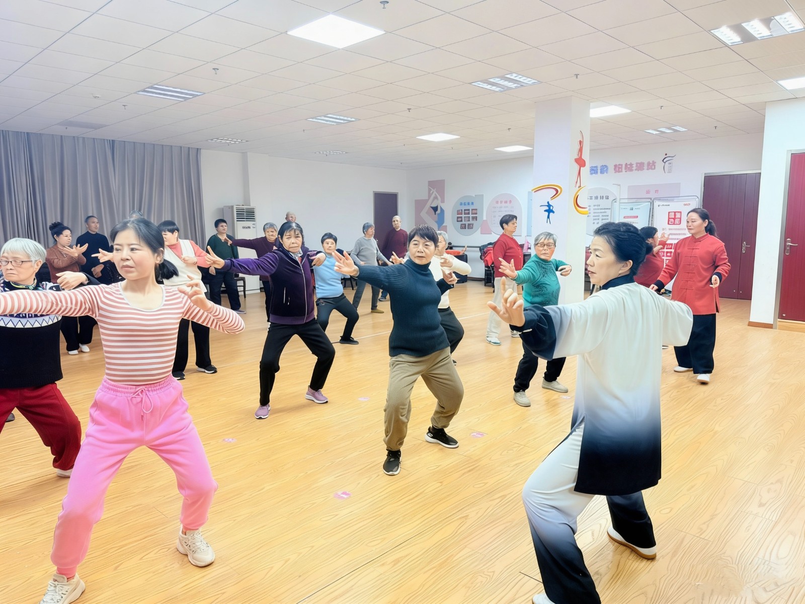 本次培训从基础招式入手,邀请专业老师逐一示范讲解动作要领,并针对学员动作进行耐心纠正,帮助大家精准掌握功法精髓。课程设置由浅入深、循序渐进,从起势到收式全程跟练,确保零基础参与者也能轻松跟学。学员们在舒缓的音乐伴奏下,在一呼一吸间释放压力,在一招一式中调养身心,在轻松愉悦的氛围里收获健康与快乐。