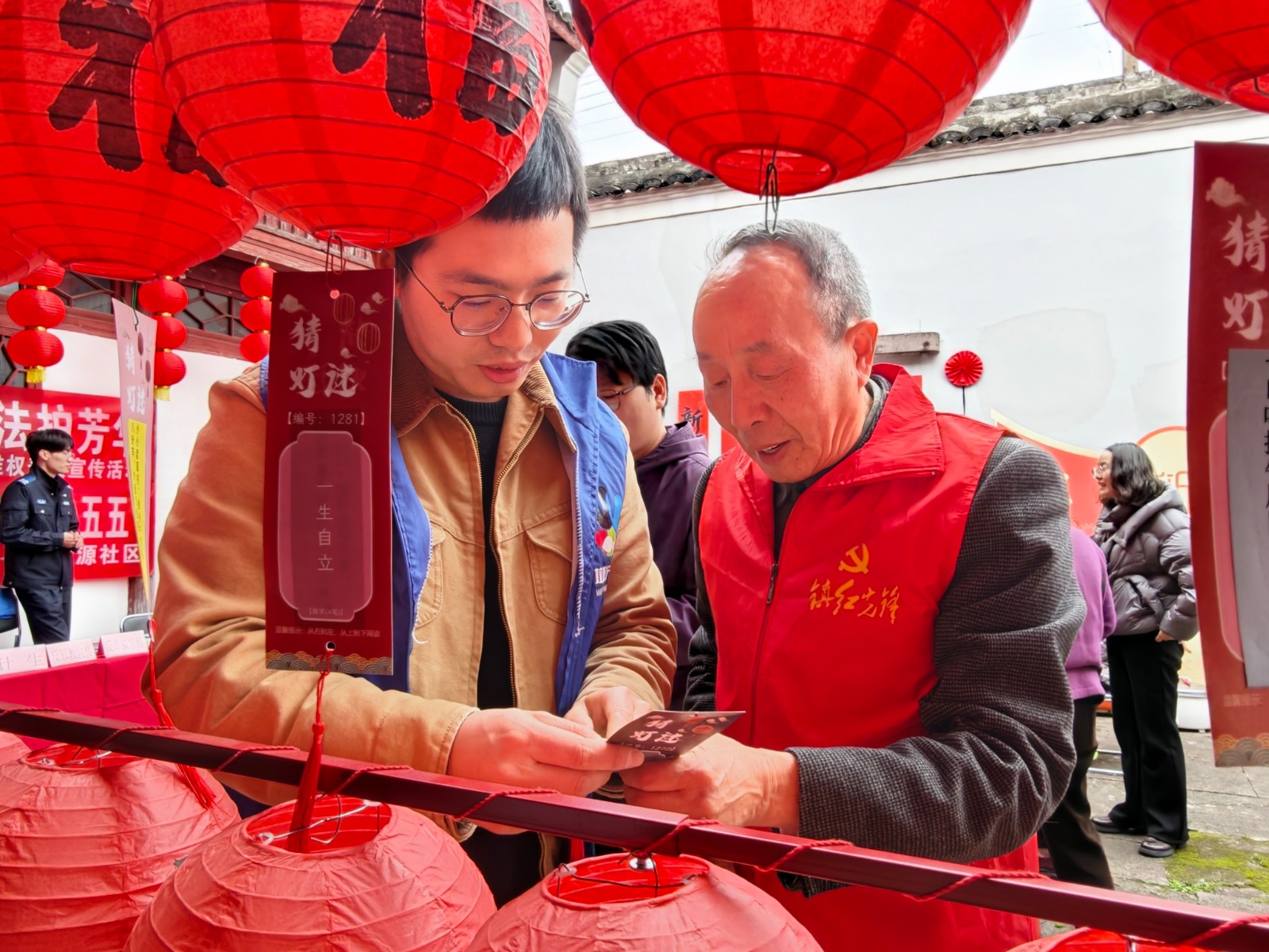 活动现场暖意融融,红十字志愿者与居民们围坐一堂包汤圆。雪白的糯米粉在手中揉搓,香甜的馅料裹满心意,欢声笑语间,一碗碗热气腾腾的汤圆新鲜出炉。猜字谜区域格外热闹,谜面巧妙融入红十字“三救三献”知识、雷锋精神及马年元宵民俗,居民们驻足思索、踊跃抢答,在趣味互动中轻松掌握应急救护、无偿献血等科普知识。