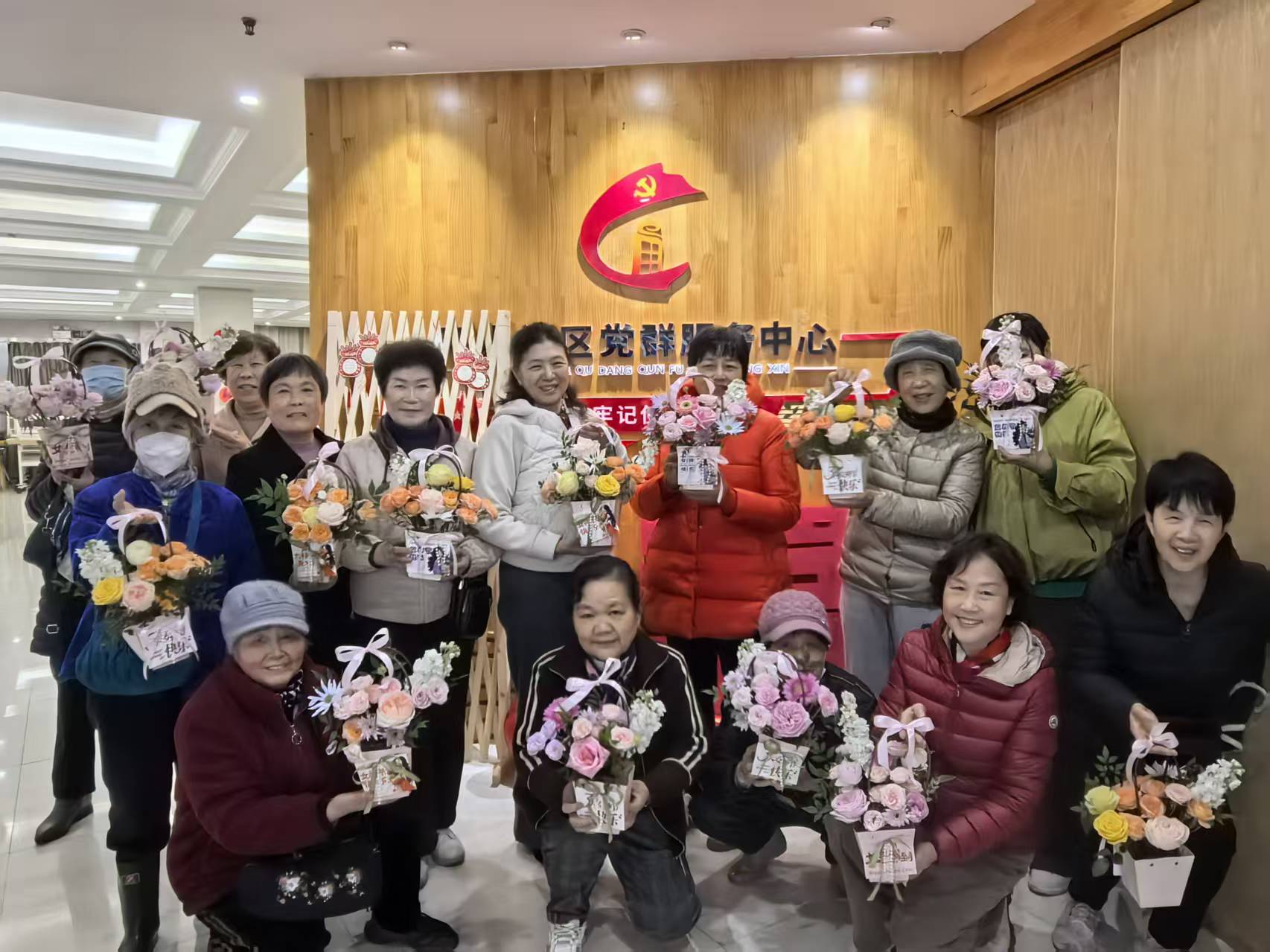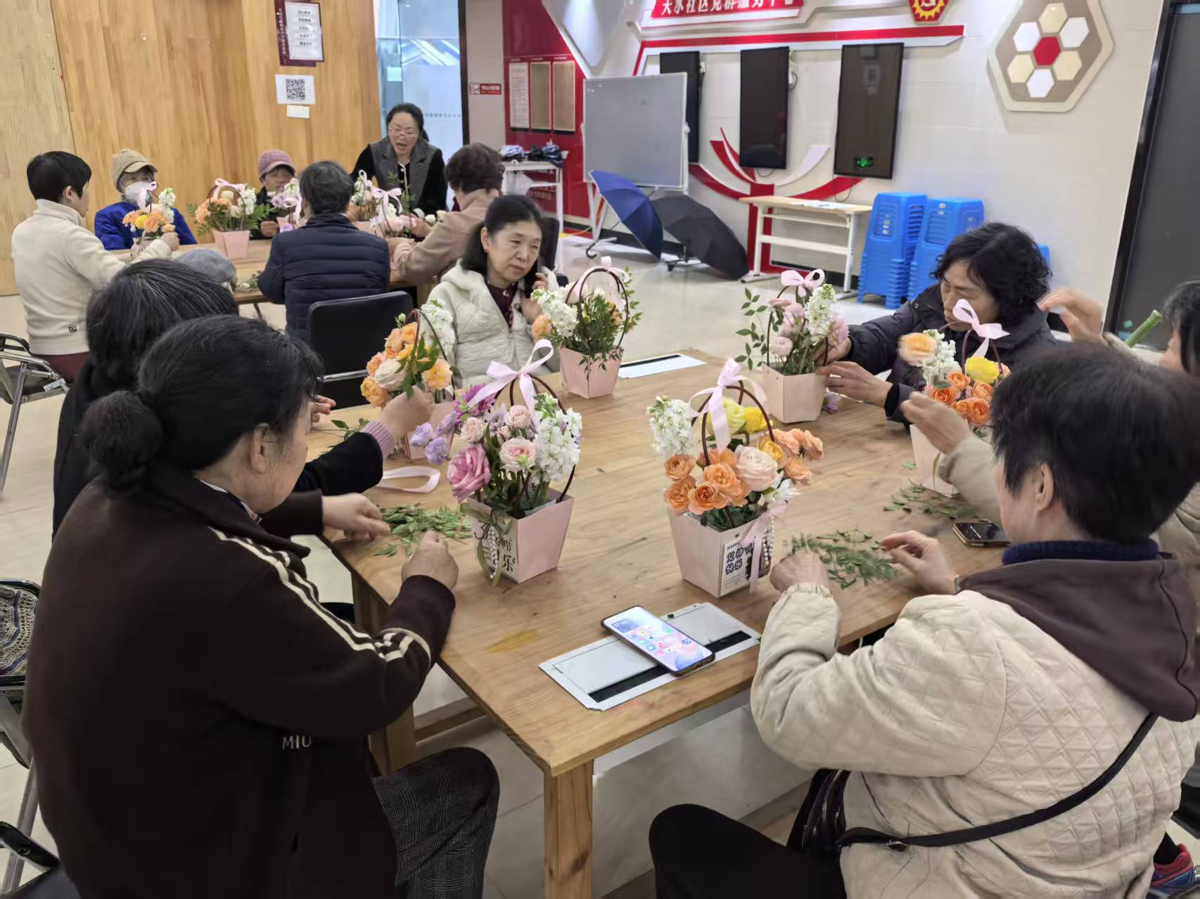 经过精心创作,一件件独具匠心、雅致美观的插花作品相继完成,每一件作品都承载着大家对生活的热爱、对节日的祝福,更彰显了新时代女性优雅自信、积极向上的精神风貌。大家手持作品合影留念,定格美好瞬间,纷纷表示此次活动既放松了身心、陶冶了情操,又感受到了社区的温暖关怀,收获满满。