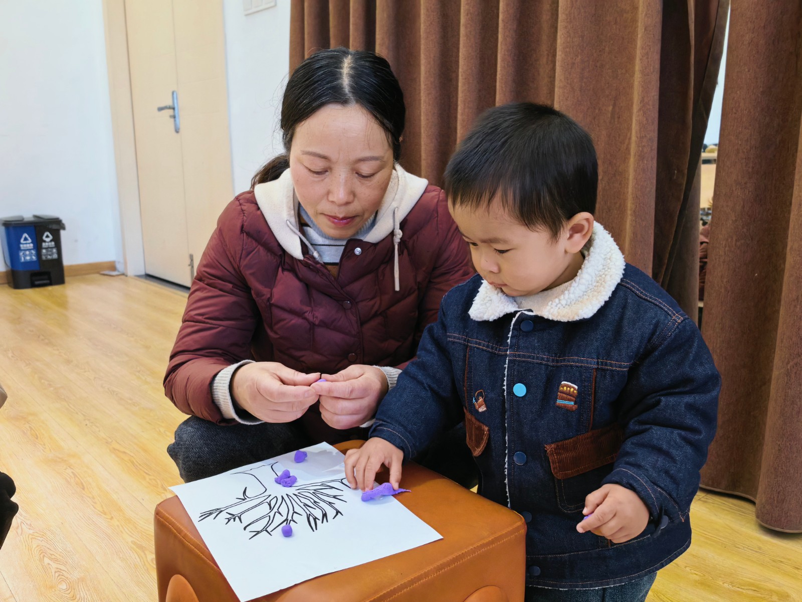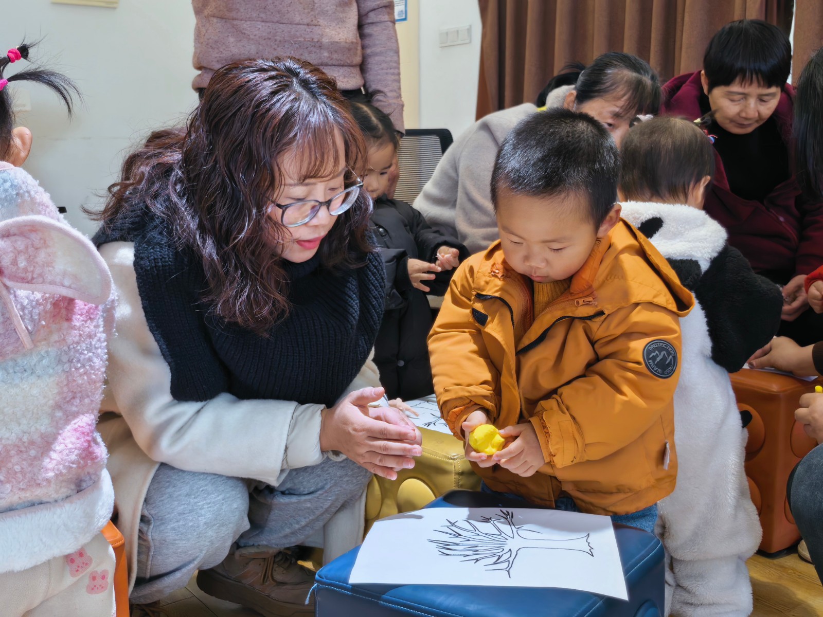 动手环节中,孩子们化身“小小园艺师”,在家长与指导员的陪伴下,用超轻粘土装点属于自己的小树。揉一揉、捏一捏、贴一贴……孩子们发挥想象力,为光秃的枝干贴上五彩“叶片”,一棵棵充满童趣的小树在指尖悄然“生长”。创作过程不仅锻炼了孩子们的动手能力,更在潜移默化中播撒下热爱自然的种子。