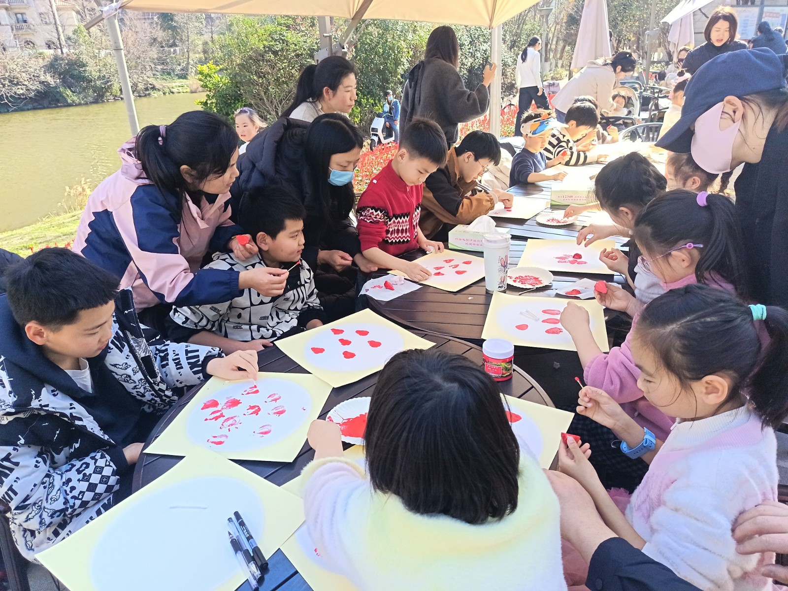 本次活动以“解压舒心、乐享陪伴”为主线,设置多项趣味互动环节,为亲子搭建沟通交流平台,舒缓生活压力,重拾童真童趣。活动伊始,孩子们以草莓为创意工具,开展艺术拓印,共同绘制“无烦恼花园”,现场洋溢着艺术气息与童真童趣。