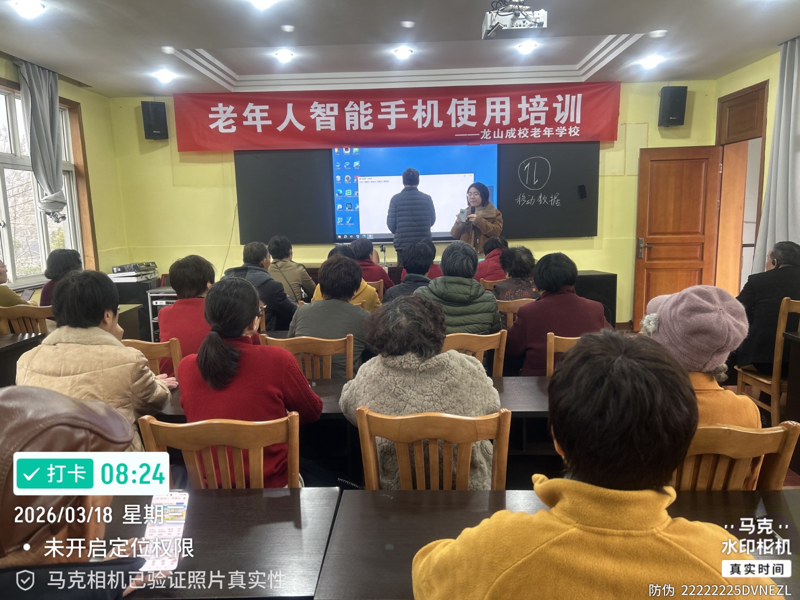 2026年3月18日,龙山成校专为老年朋友开设的智能手机实用培训正式开班,30位银发学员齐聚课堂,在专业老师手把手指导下,解锁数字技能、跨越“数字鸿沟”,让智能手机真正成为晚年生活的“好帮手”。