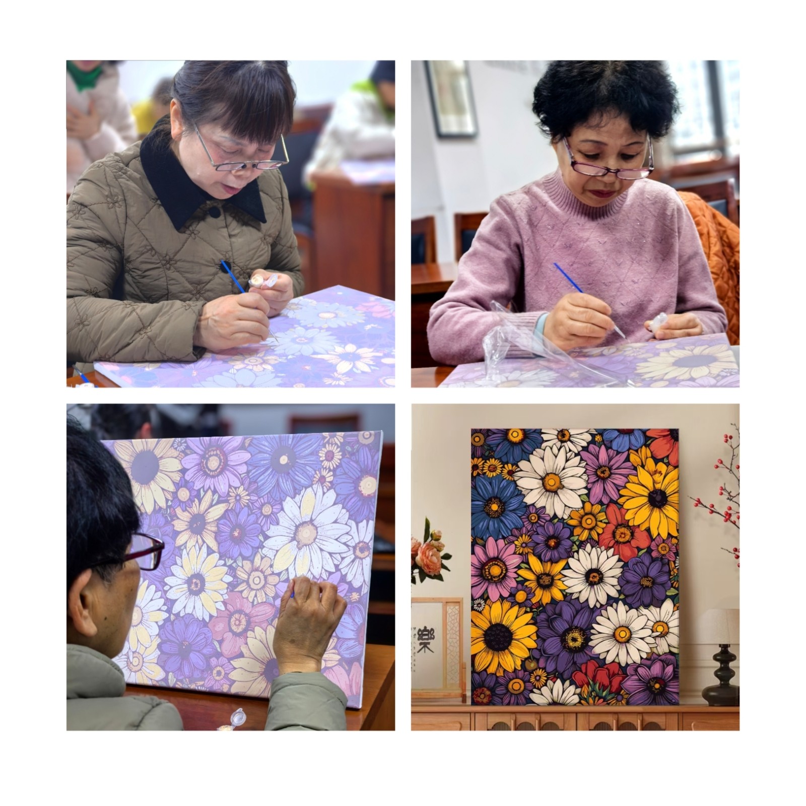 这种基于共同爱好的社交,正是当下社区治理中倡导的“趣缘同体”的生动体现。通过数字油画这一共同的兴趣纽带,平日里只在小区里点头之交的邻居,成了画布前并肩作战的“画友”。跟老邻居们一起画画,说说笑笑,比一个人闷在家里强多了。这种活动让我们这些老头子老太太找到了新的组织!”