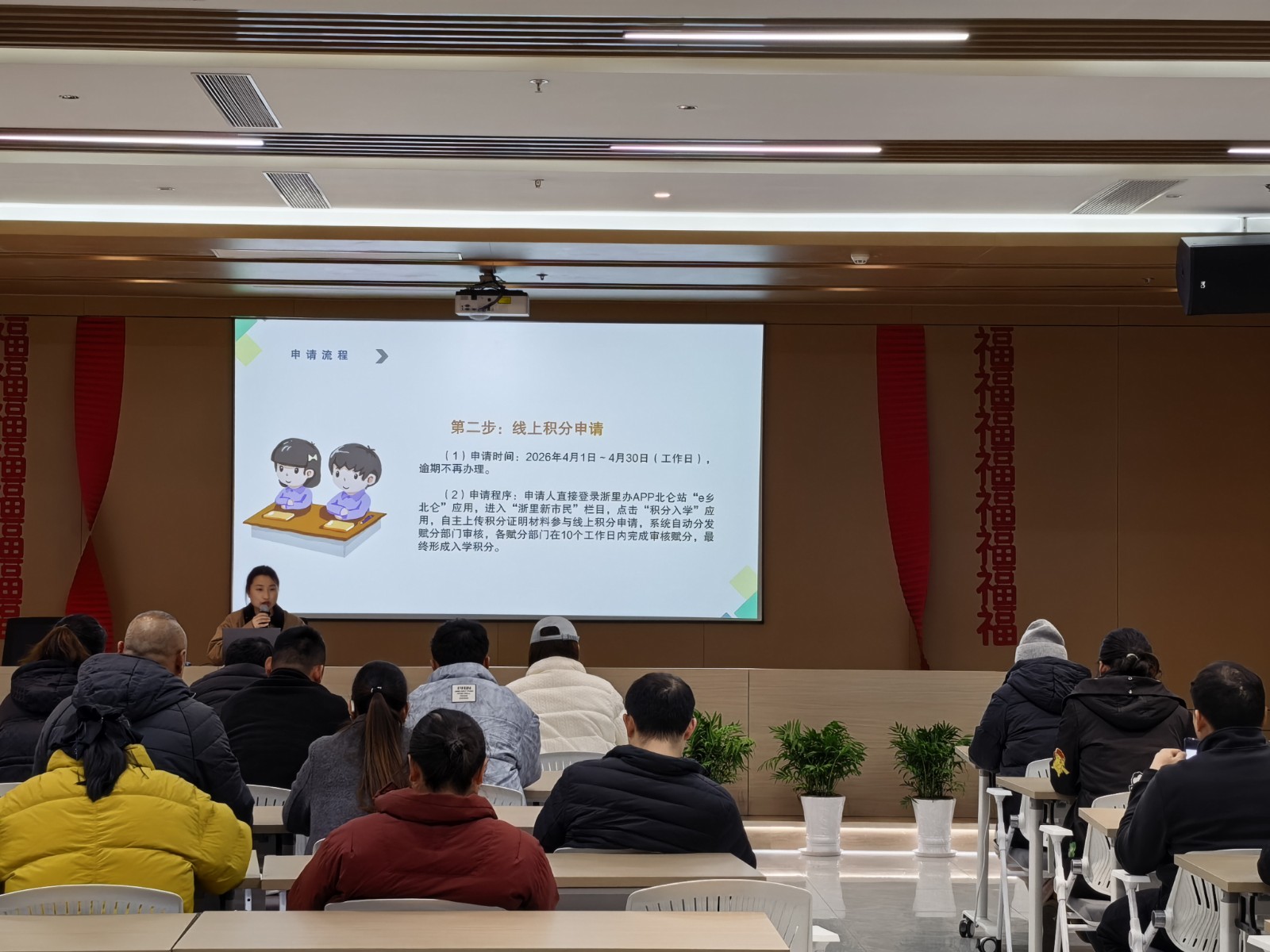 为有序推进随迁子女就学工作,保障入学公平有序,并帮助随迁子女家庭全面了解政策法规,3月20日晚上,青墩社区党群服务中心联合青墩社区融合性社会组织举办2026年流动人口量化积分入学政策宣讲会。