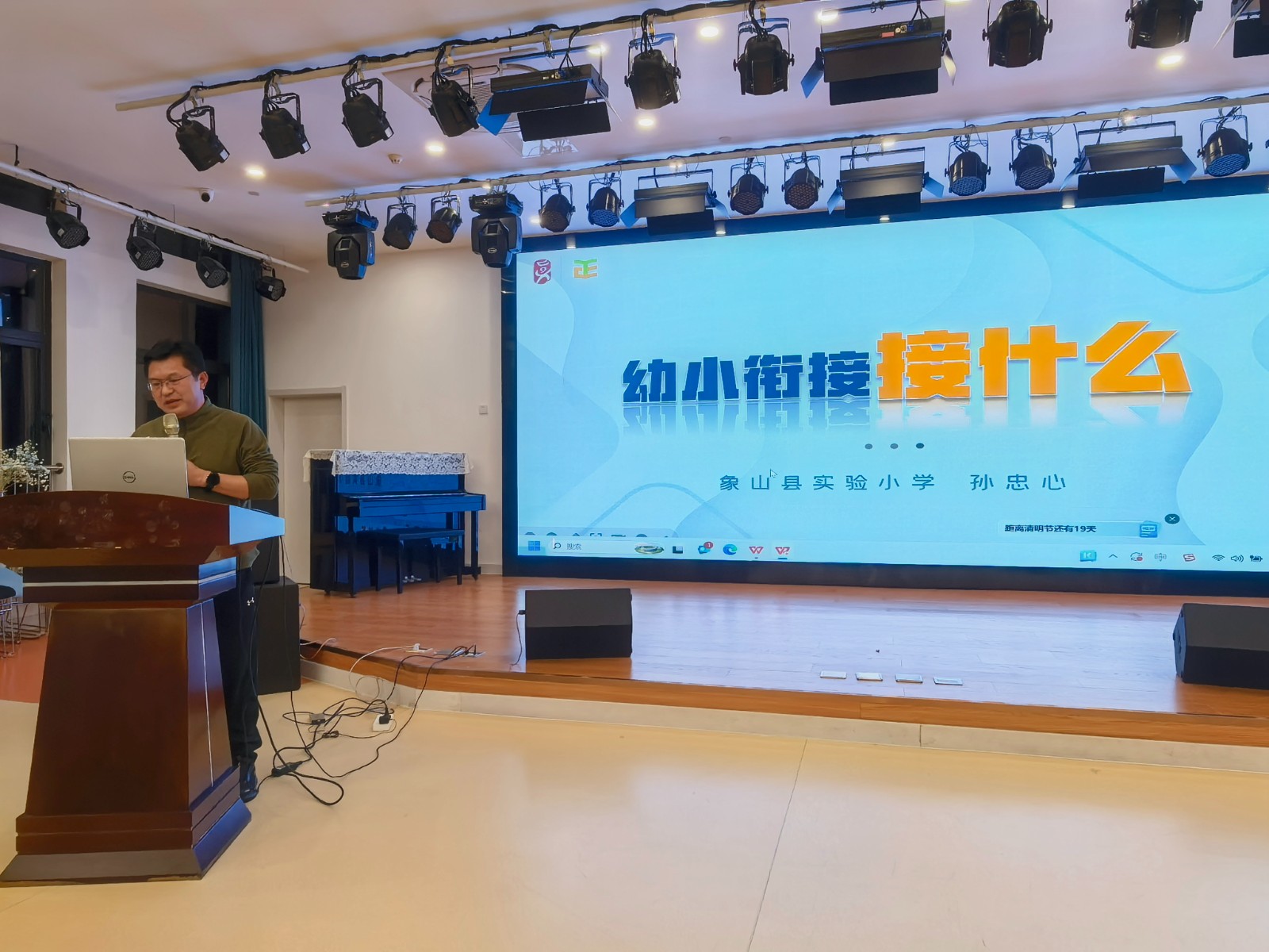 春风有信,花开有期。为进一步帮助家长树立科学的育儿观念,缓解幼儿入学焦虑,帮助大班孩子平稳、自信地迈向小学生活,爵溪成校特邀县正高级教师、实验小学校长孙忠心为爵溪街道中心幼儿园,开展了以“幼小衔接接什么”为主题的家长课堂专题讲座,为广大家长送上了一份干货满满的“入学指南”。聚焦核心素养,解读“衔接密码”。