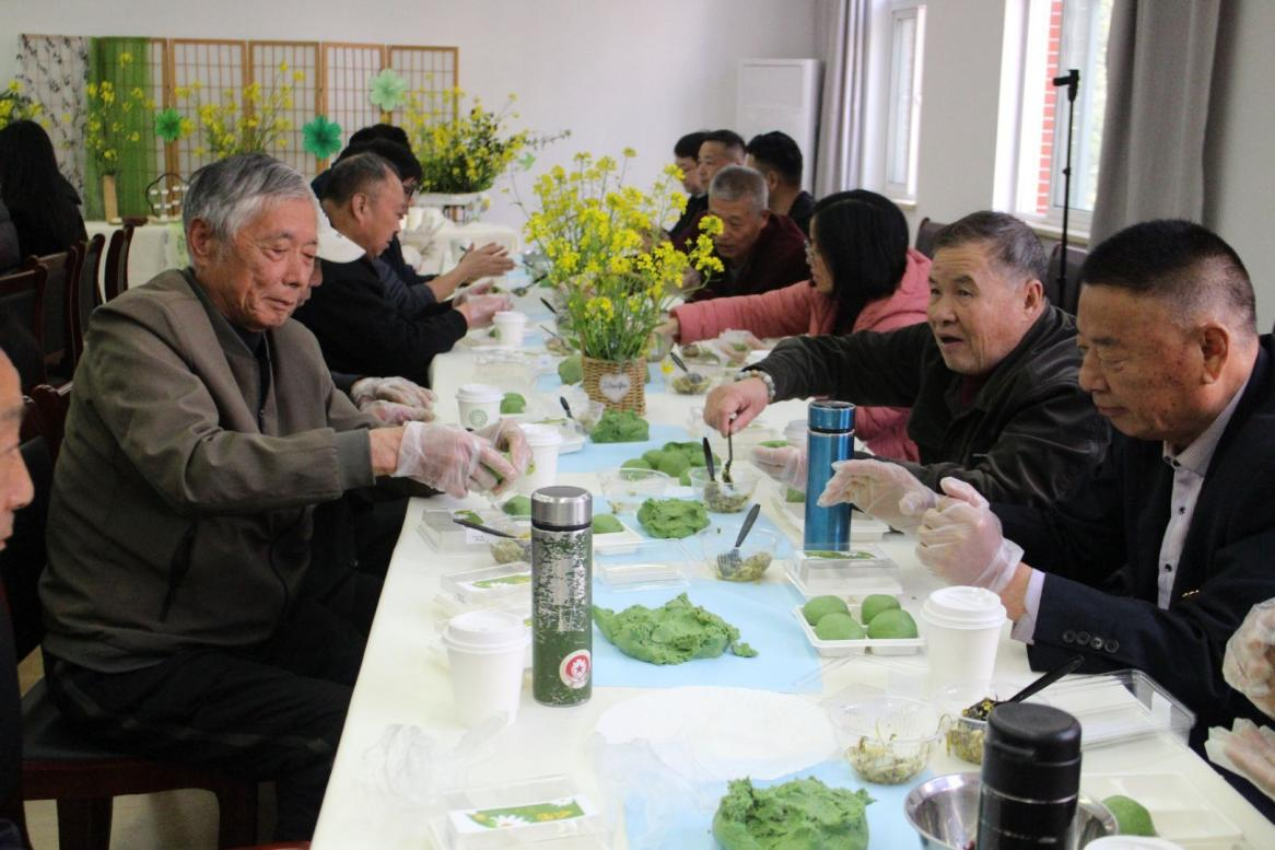 活动现场暖意融融,工作人员提前备好糯米粉、艾草汁、豆沙、芝麻等青团制作材料,耐心讲解青团的制作步骤和技巧。大家围坐在一起,揉面团、包馅料、搓圆整形,分工协作、其乐融融,欢声笑语不断。从生疏试探到熟练操作,不一会儿,一个个色泽翠绿、形态圆润的青团就摆满了桌面,散发着淡淡的艾草清香。