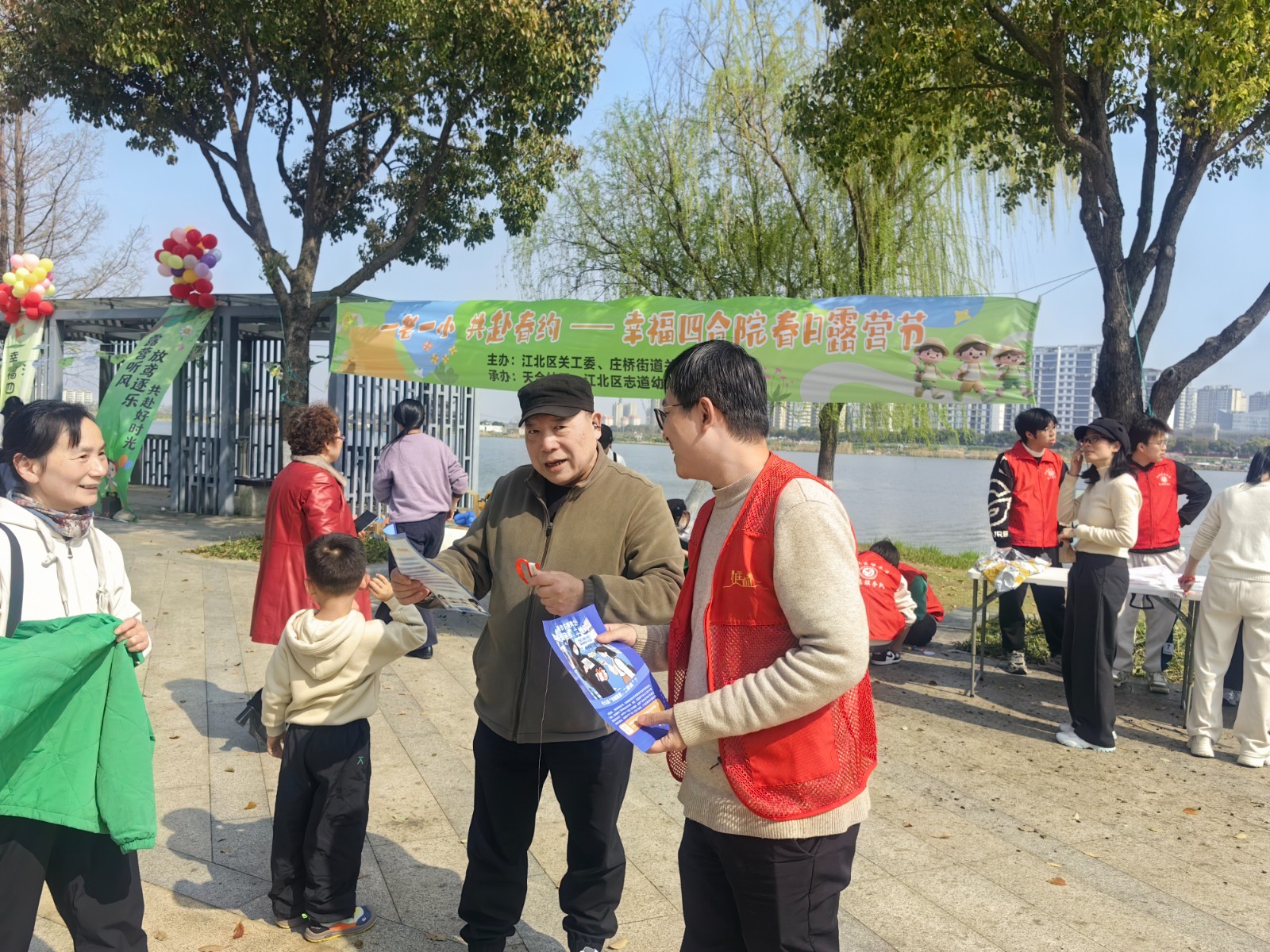 现场分为露营区、表演区、游戏区、咖啡体验区以及风筝区。空旷的草坪上“长”出了十余顶色彩各异的露营帐篷;居民们自发登台献唱,从经典老歌到童谣儿歌,赢得阵阵掌声;咖啡师现场演示制作并分享咖啡,更有美味的小点心俘获一群“小吃货”,为这场春日之约增添了几分甜美;风筝DIY环节中,亲子家庭在空白风筝上挥洒创意,有的画下全家福,有的写下“孝亲敬老”的家训格言,五彩斑斓的风筝在姚江上空升起,一幅“家风高扬、代代相传”的动人画卷徐徐展开;祖孙互动游戏环节也是笑声不断、其乐融融。同时,社区网格员和啄木鸟志愿团队的志愿者也穿梭在人群中,向居民发放反诈、反邪教宣传单,用通俗易懂的语言讲解电信网络诈骗的常见套路。这场春日之约,既是一场欢乐的聚会,也是一次平安的守护。
