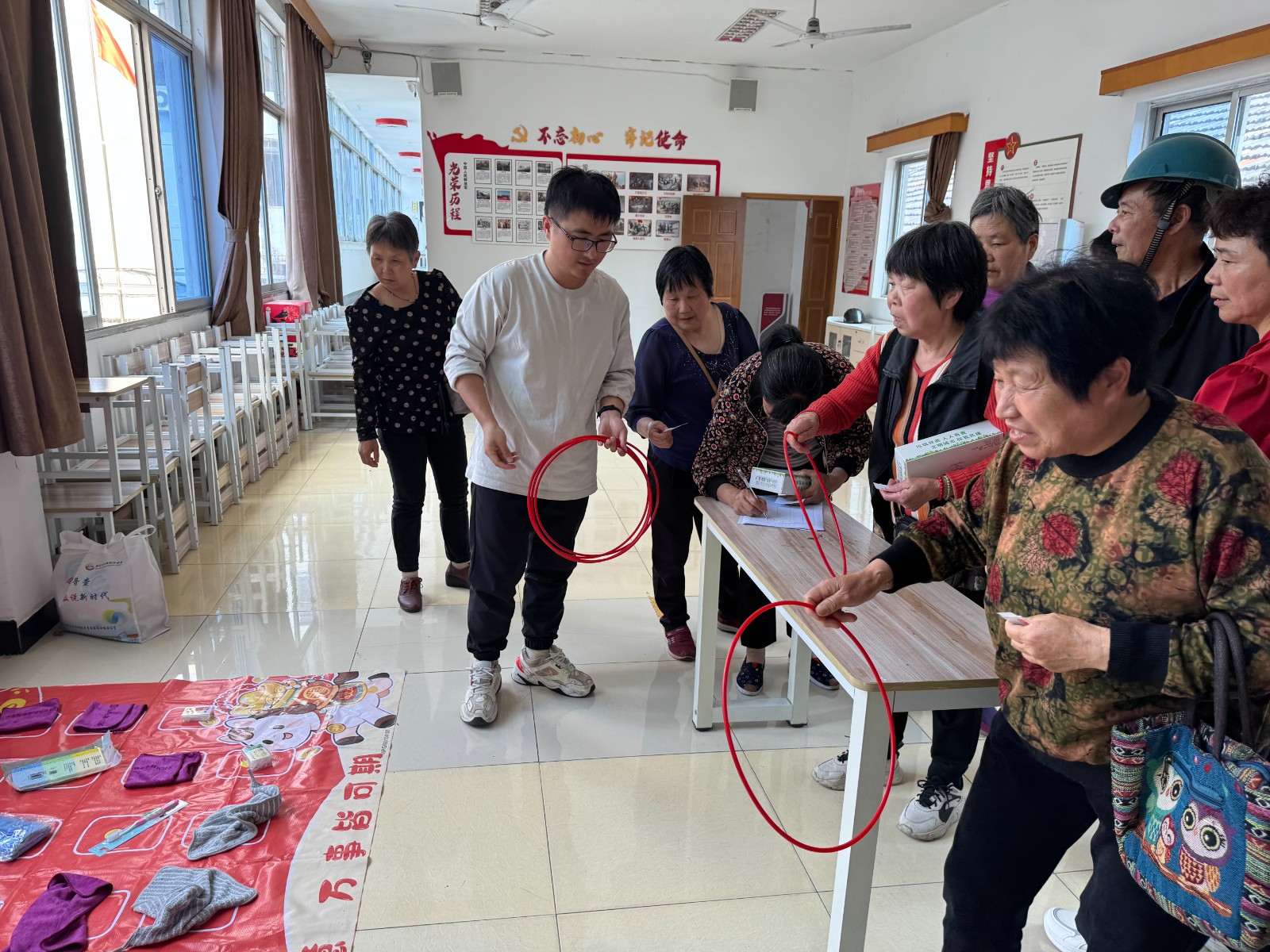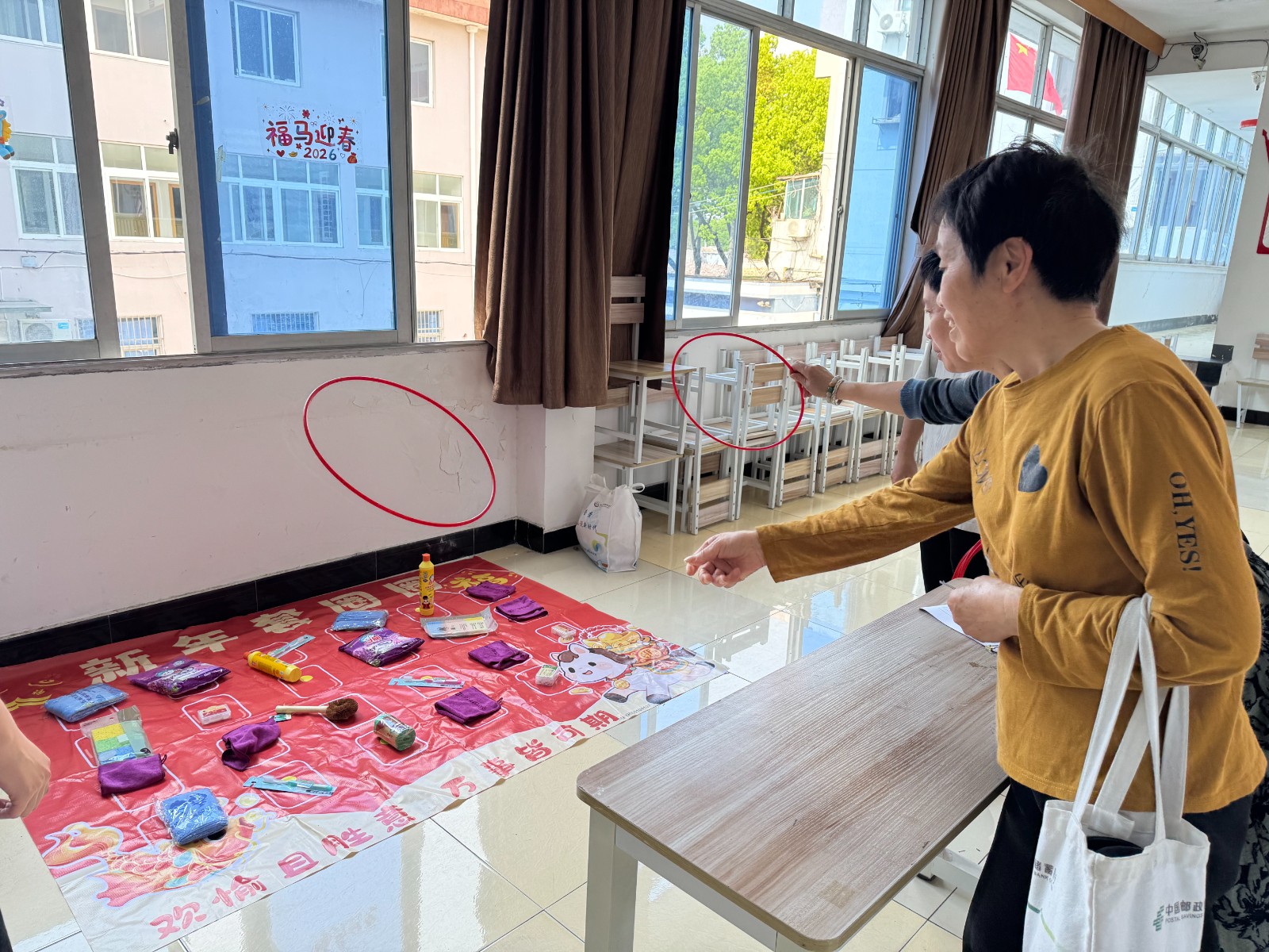 活动现场热闹非凡,趣味盎然的游戏项目让“老小孩”们重拾童趣。在“趣味套圈”区域,洗衣液、垃圾袋、洗洁精、指甲剪、牙刷、毛巾等实用日用品整齐排列,老人们手持套圈,凝神屏气,瞄准心仪奖品轻轻一掷。每当套圈精准落下,收获的不仅是实用的日用品,更是满满的成就感和喜悦。