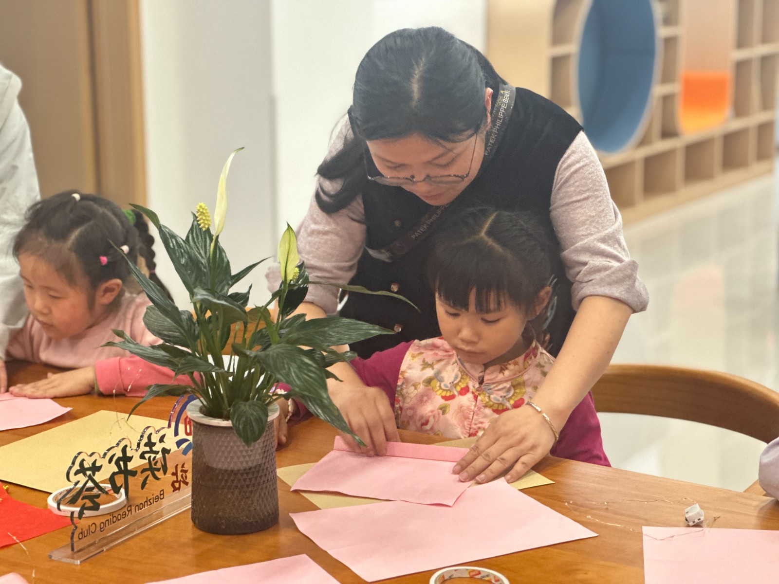 在创意书灯制作现场,亲子家庭通力协作,默契十足。家长耐心指导,孩子认真学习,一折一叠、一拼一装之间,原本平淡的纸张化作了造型别致的创意书灯。暖黄的灯光亮起,照亮的不仅是书本的智慧,更是亲子间深厚的情感联结。