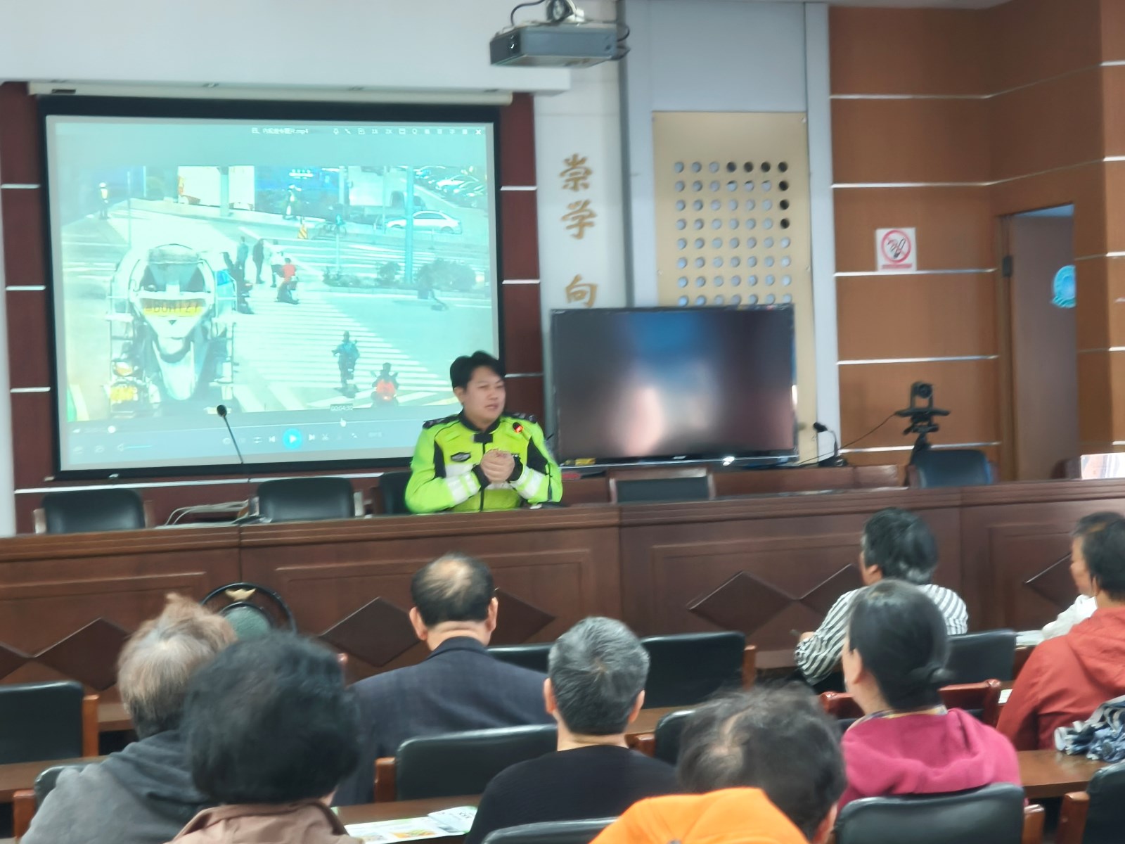 近日,清水浦村邀请区交警大队蛟川中队徐警官为辖区内部分中老年人上了一堂有关 防范“内轮差”伤人的交通安全讲座。