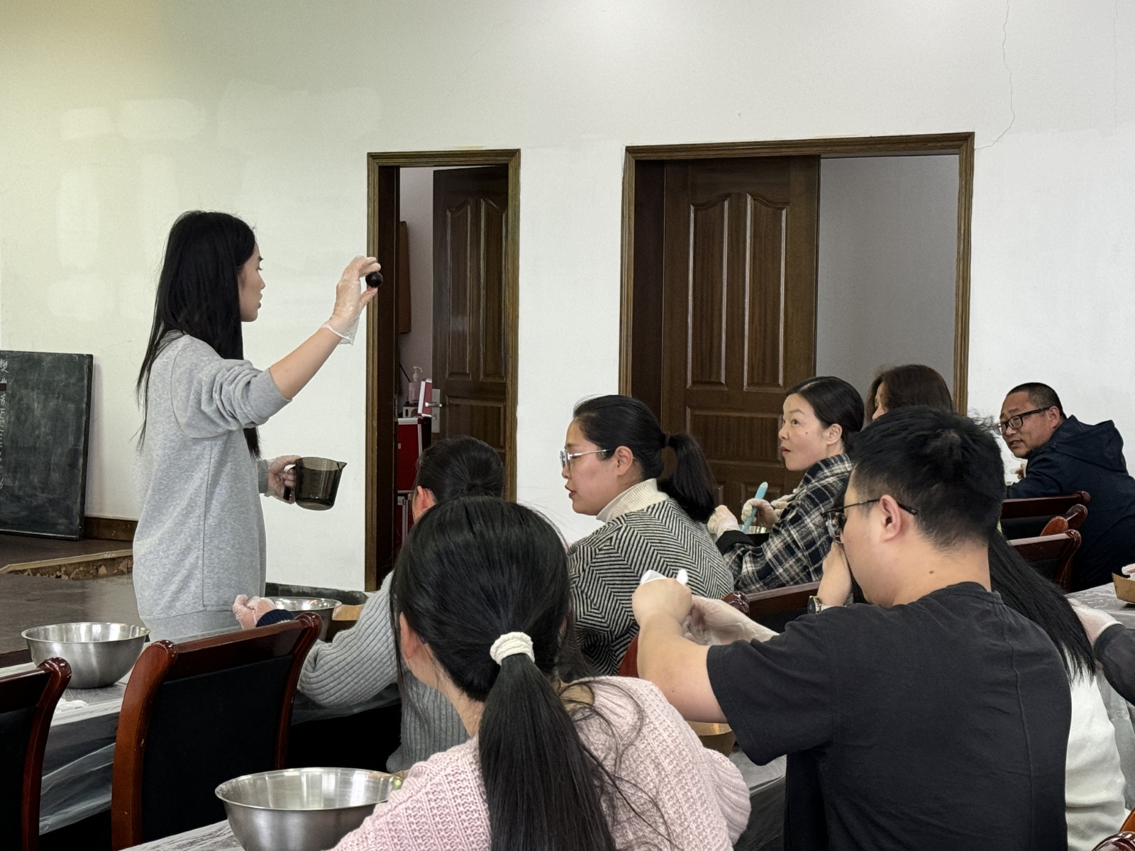 大家各展身手,根据自身口味随心搭配馅料香甜豆沙裹挟着艾草清香,浓郁芝麻交融着春日气息,咸香蛋黄点缀出独特风味。捏合、收口、搓圆,一个个翠绿欲滴、圆润饱满的青团在指尖诞生,模样可爱、香气扑鼻。随后,大家小心翼翼地将亲手制作的青团裹上保鲜膜、装入精致礼盒,看着自己的劳动成果,每个人的脸上都洋溢着满满的成就感与幸福笑意。