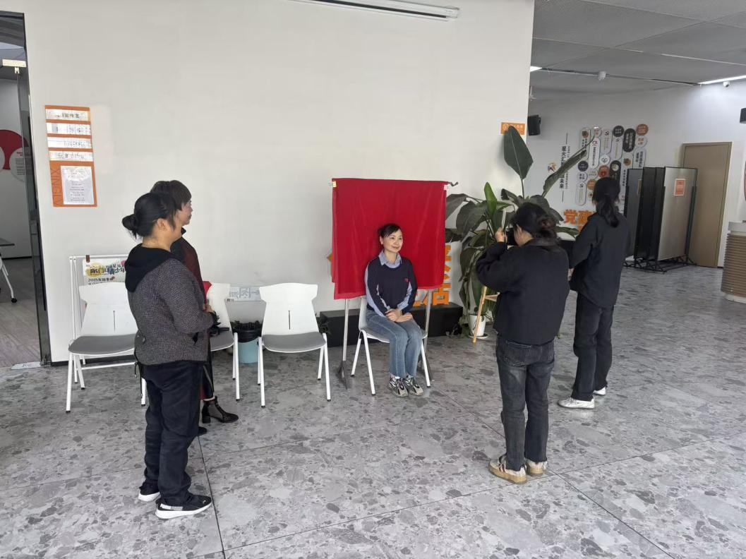 活动前期,网格员通过业主群、楼道公告、入户通知等多种方式广泛宣传,明确活动对象、时间及服务内容,确保辖区老年居民知晓率,让行动不便的老人也能提前做好准备。活动现场暖意融融,秩序井然,社区工作人员与志愿者分工协作,搭建起简易“摄影棚”,配备专业摄影设备与证件照背景板,全程提供贴心服务。